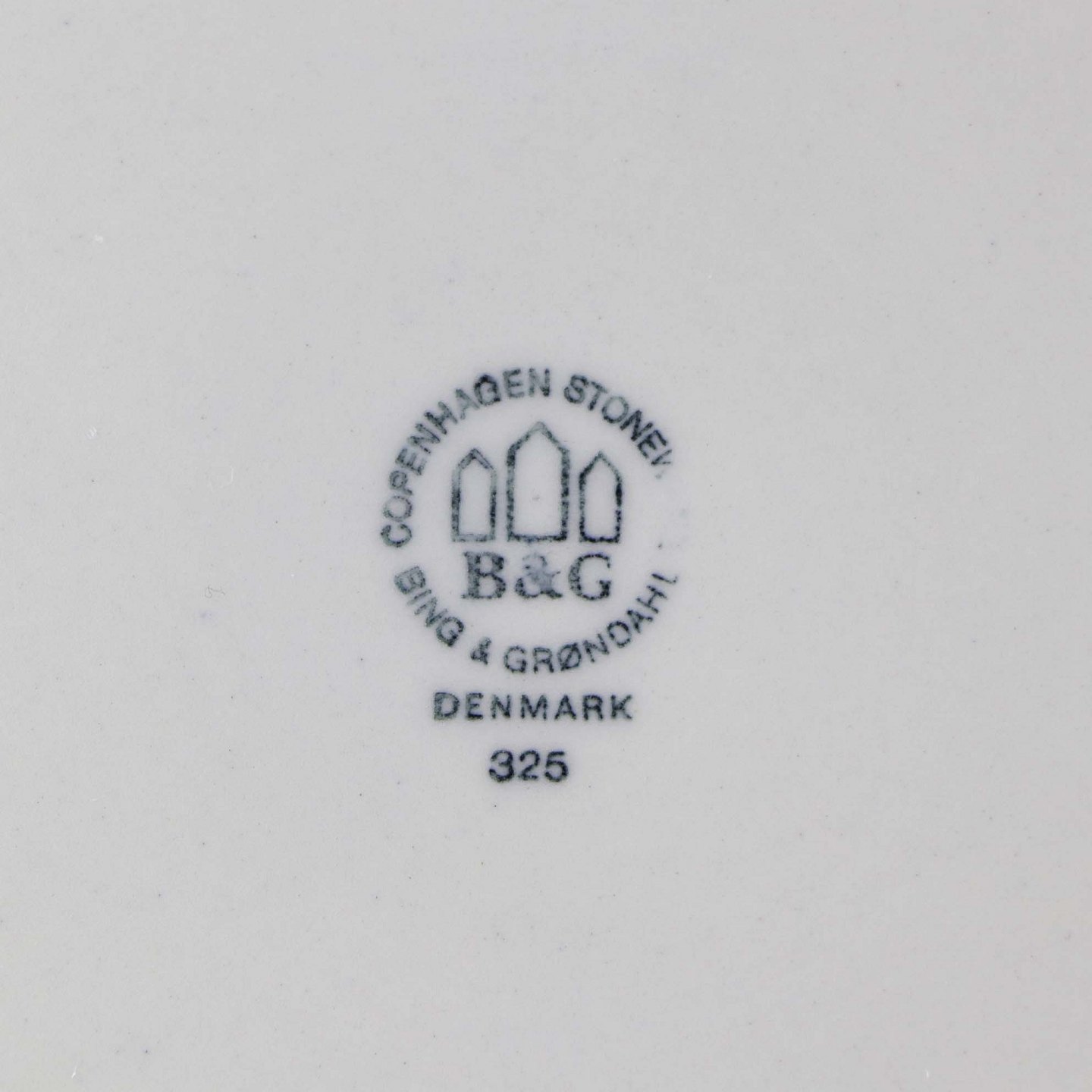Flad middagstallerken i stentøj fra os ukendt stel Nr. 325Producent Bing & Grøndahl