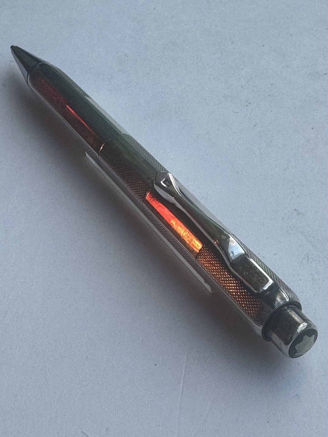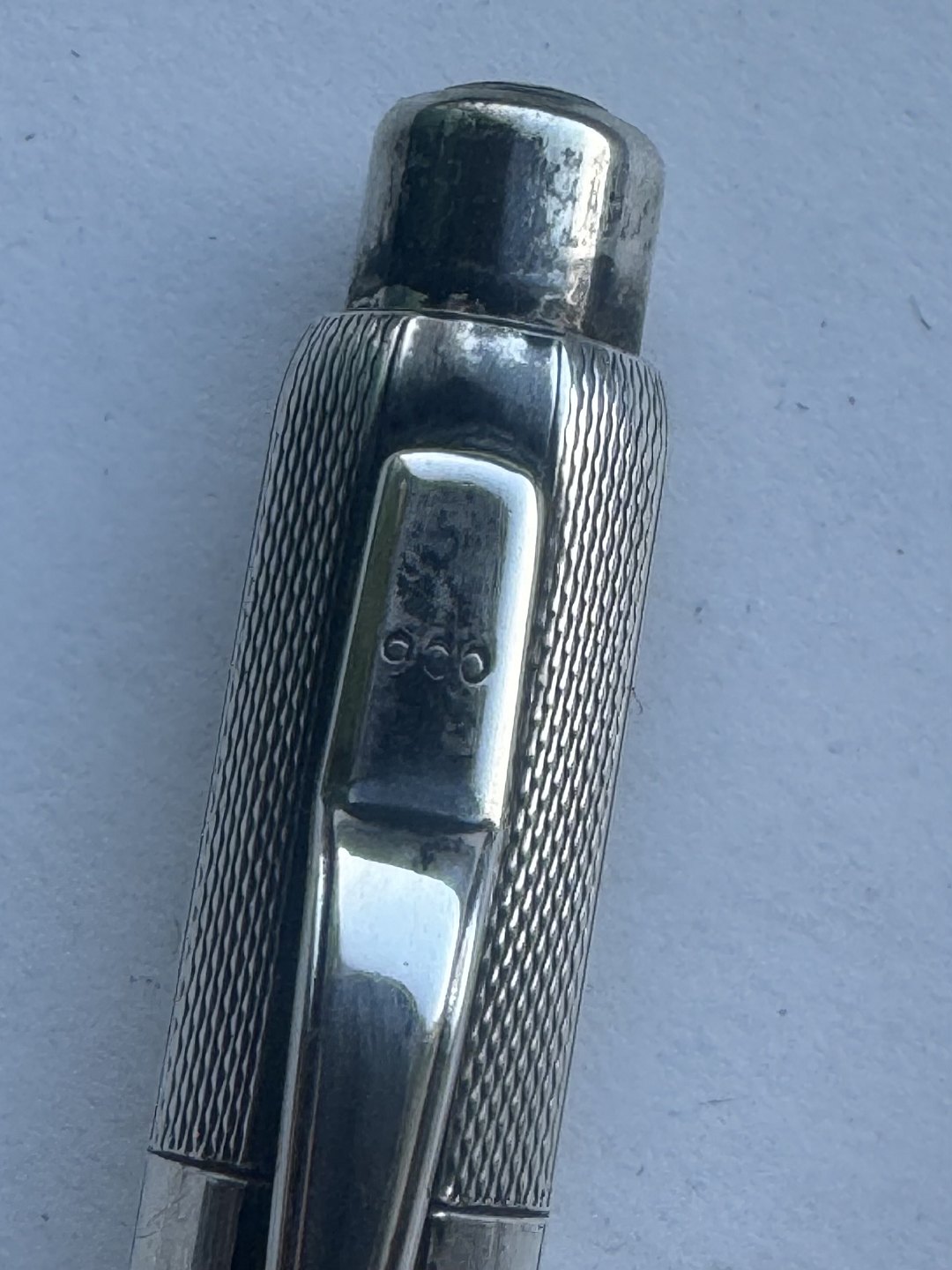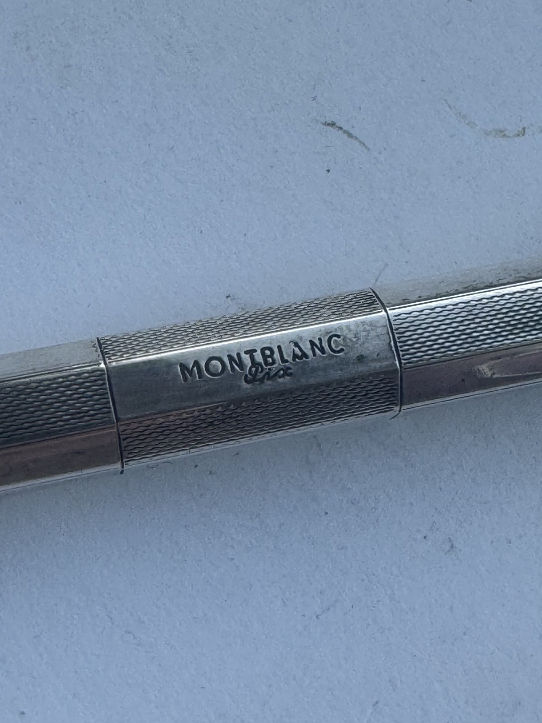 PURE ART DECO STYLE: Octagonal Montblanc Pix pencil in silver. Appears in good and functional condition. No damage. Factory mark on the side. Silver stamp on the clip (900). Length: 11.8 cm Dealer