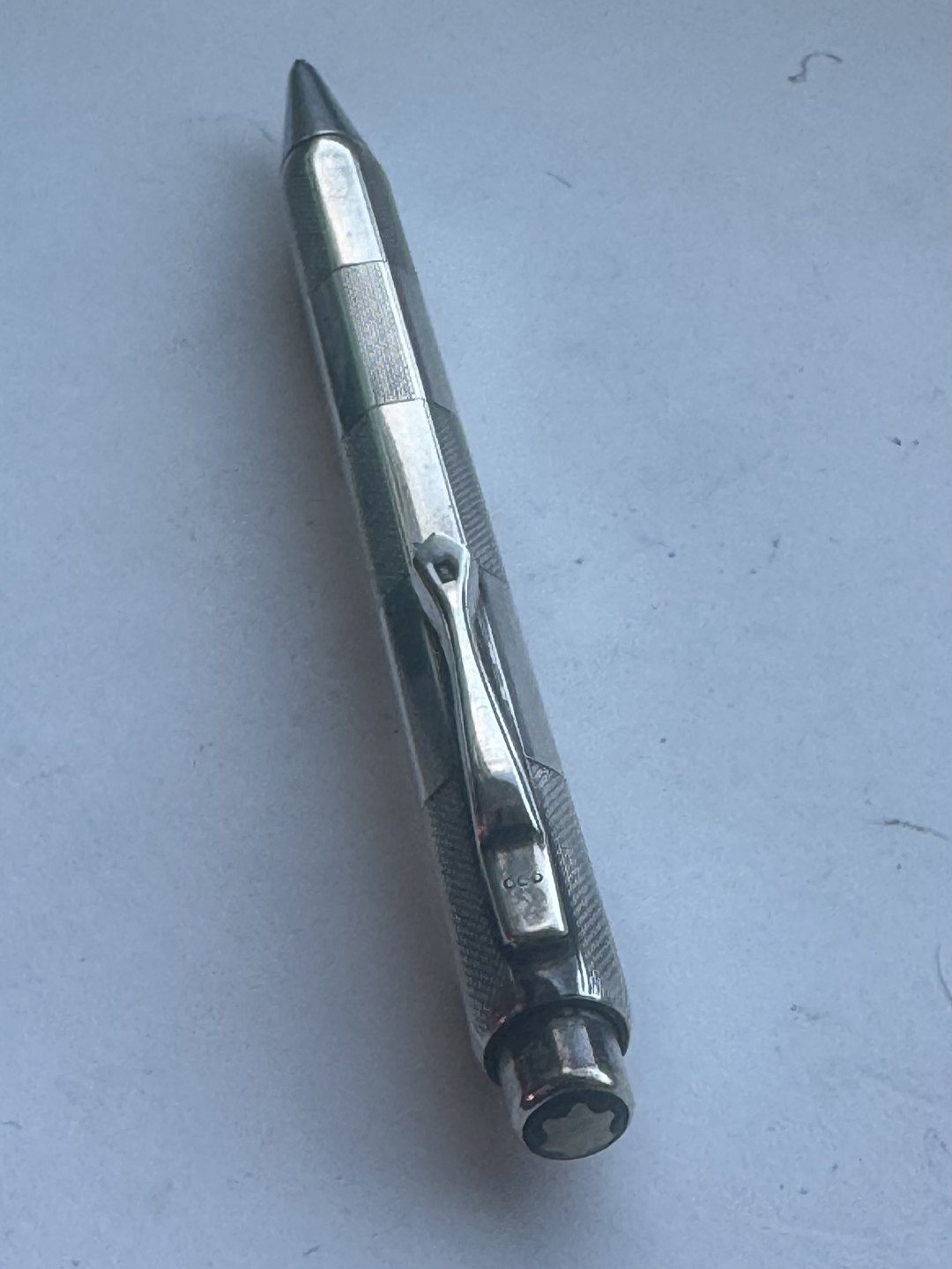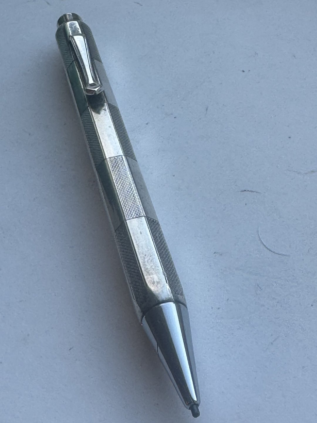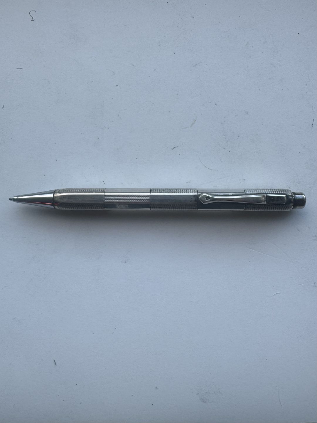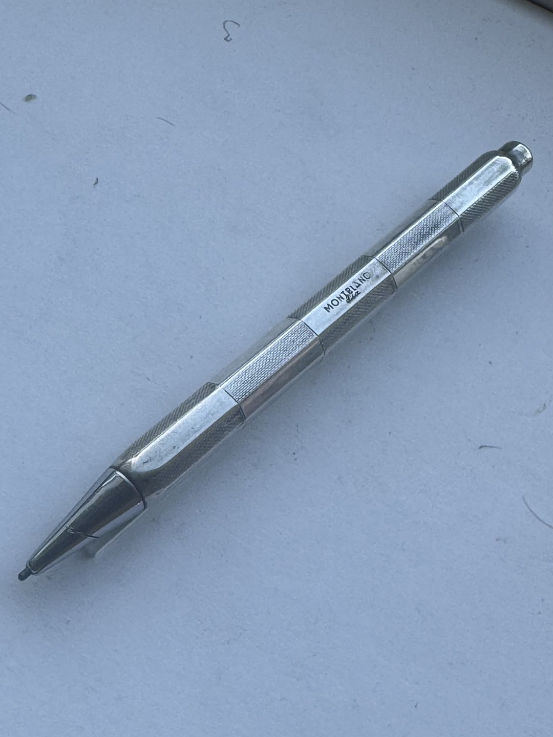 PURE ART DECO STYLE: Octagonal Montblanc Pix pencil in silver. Appears in good and functional condition. No damage. Factory mark on the side. Silver stamp on the clip (900). Length: 11.8 cm Dealer