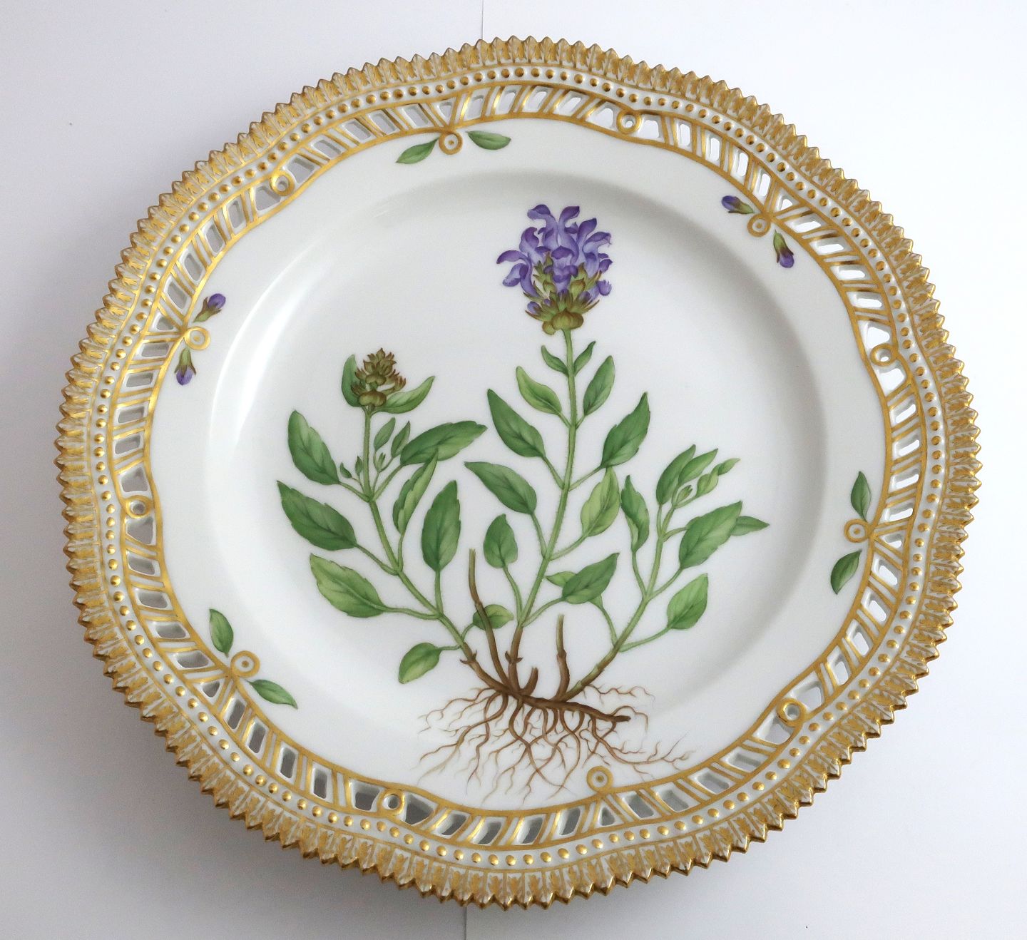 Royal Copenhagen. Flora Danica plate w. open-work border. Diameter 25 cm. Model 3553. (1 quality). Brunella grandiflora Dealer