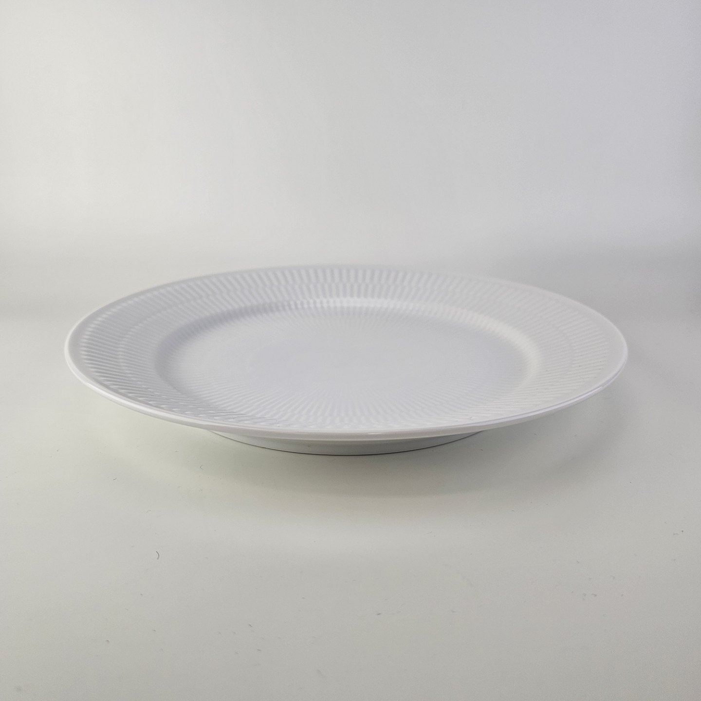 Flad middagstallerken i kongeligt porcelæn fra stellet Hvid RifletNr. 627