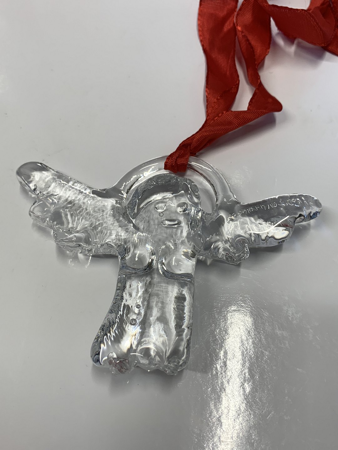 Super nice Christmas hanging glass, designed by Bertil Vallien for Kosta Boda. Hang the sweet angel on the Christmas tree, a branch, in the window or down from the ceiling. It appears in beautiful and complete condition.Height: 7.2 cm.