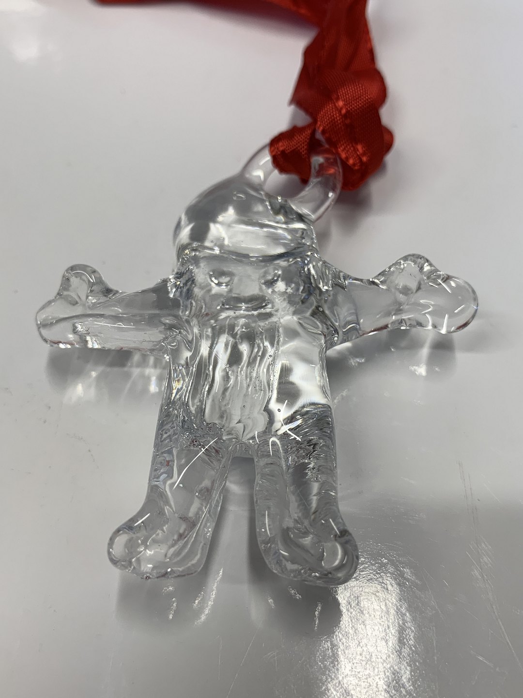 Super nice Christmas hanging glass, designed by Bertil Vallien for Kosta Boda. Hang the sweet Santa Claus on the Christmas tree, a branch, in the window or down from the ceiling. It appears in beautiful and complete condition.Height: 7 cm.