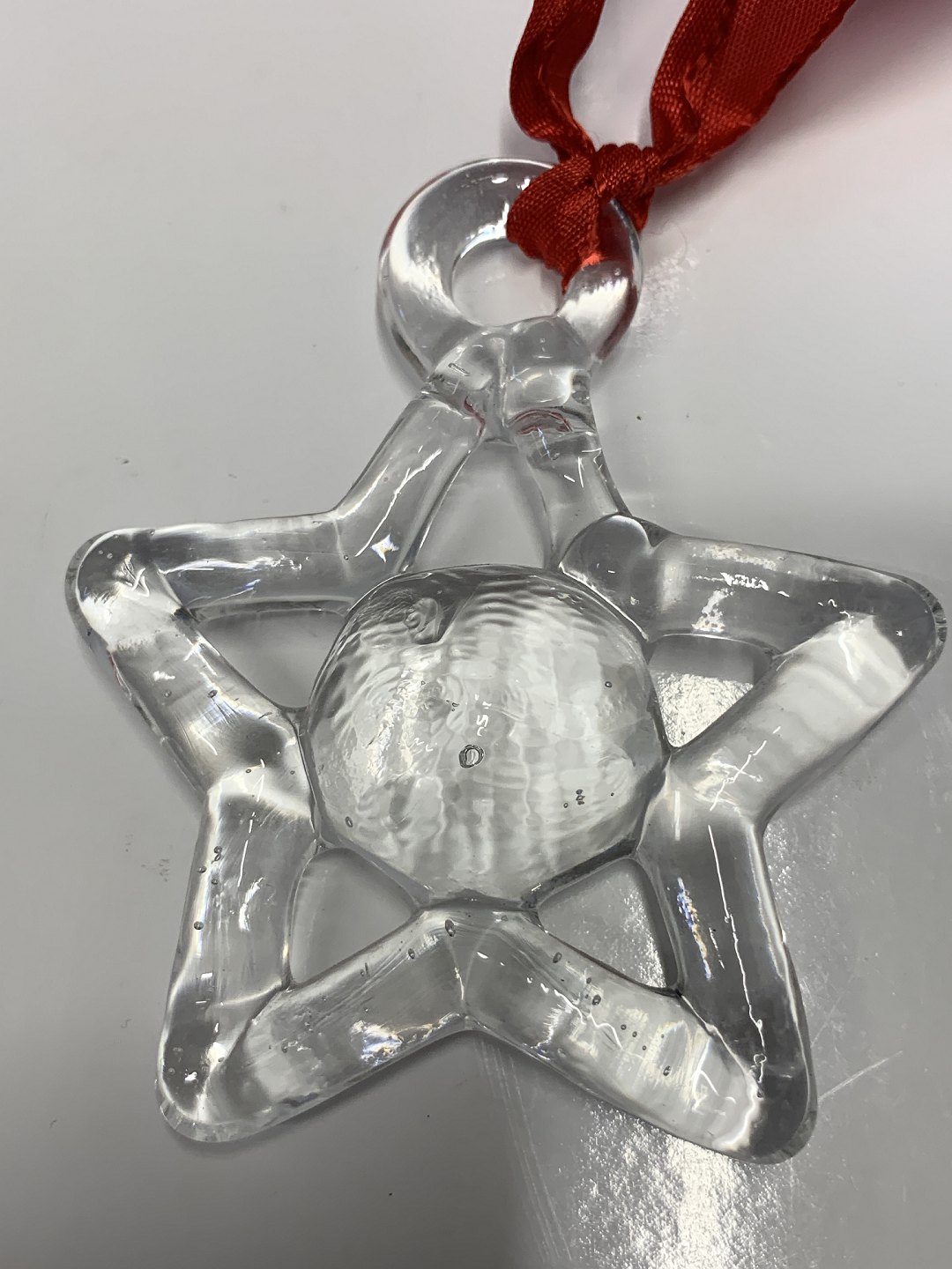 Super nice Christmas hanging glass, designed by Bertil Vallien for Kosta Boda. Hang the sweet poinsettia on the Christmas tree, a branch, in the window or from the ceiling. It appears in beautiful and complete condition.Height: 8 cm.