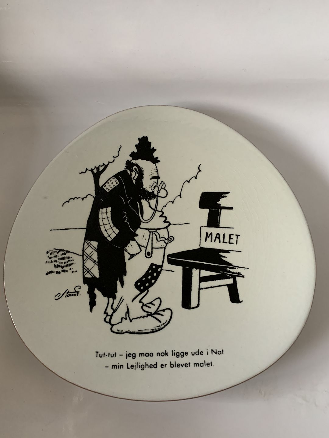 Knabstrup Plate with Storm P. Motif and VerseText:- Tut-tut - I'll probably have to lie out tonight - my apartment has been painted.