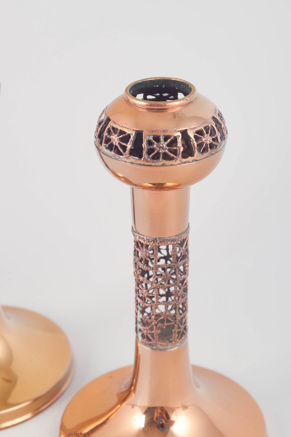 Decorative candlesticks in polished brass featuring Sarpaneva’s characteristic pierced, jewellery-like detailing. A striking pair from the Finnish modern design tradition.
