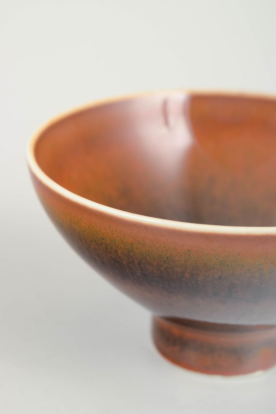 Elegant footed bowl in glazed stoneware with warm brown-red hues and darker tonal shading, executed in Stålhane’s characteristic refined glaze technique.
