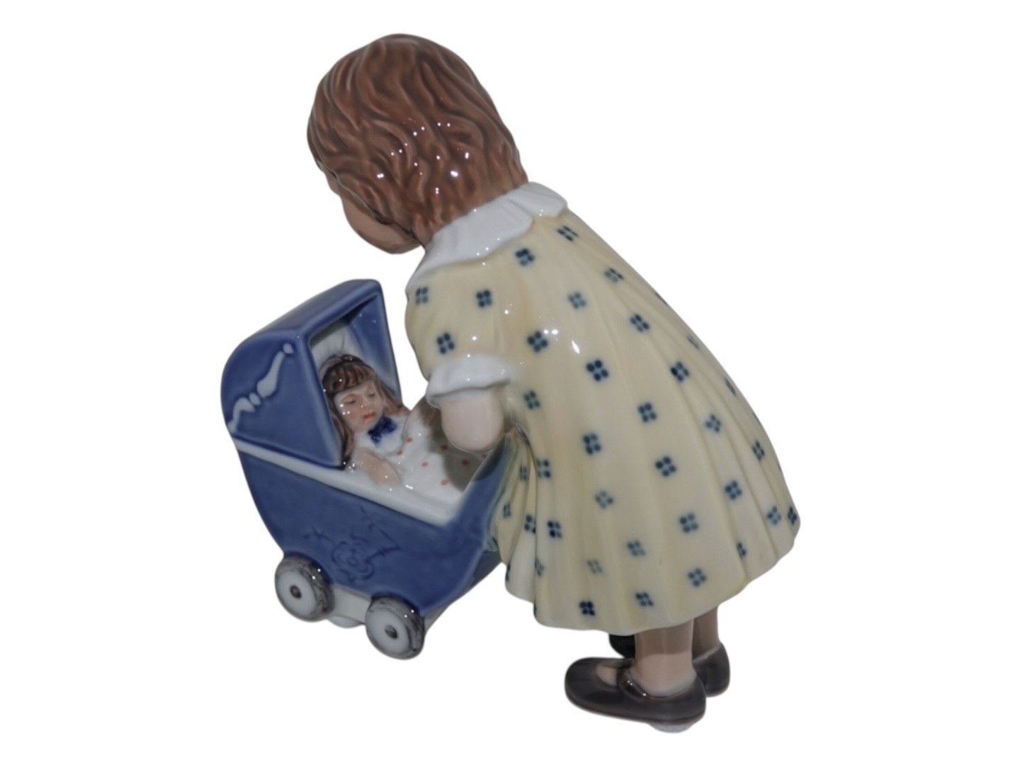 Royal Copenhagen figurine, girl with blue baby carriage.Decoration number 407.