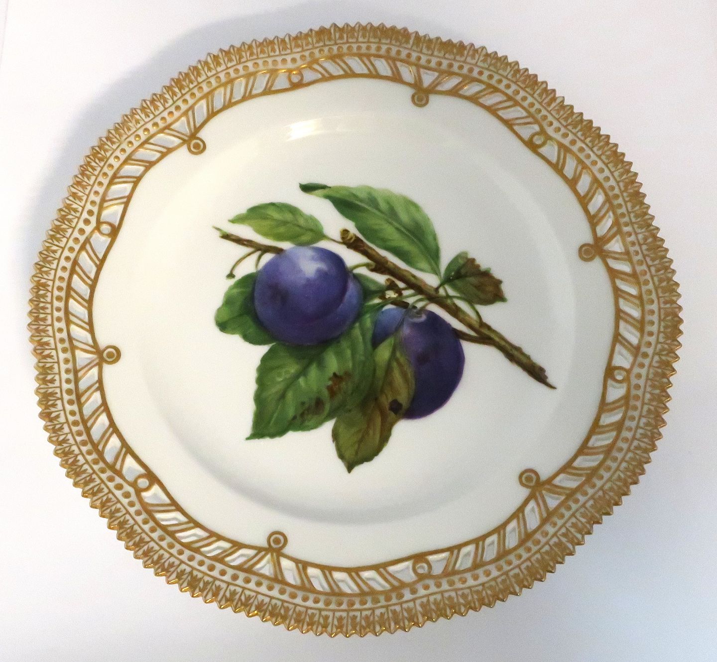 Royal Copenhagen Flora Danica, fruit plate. Lunch plate with open-work border. Design # 429/3554. Diameter 23 cm. (1 quality). Dealer