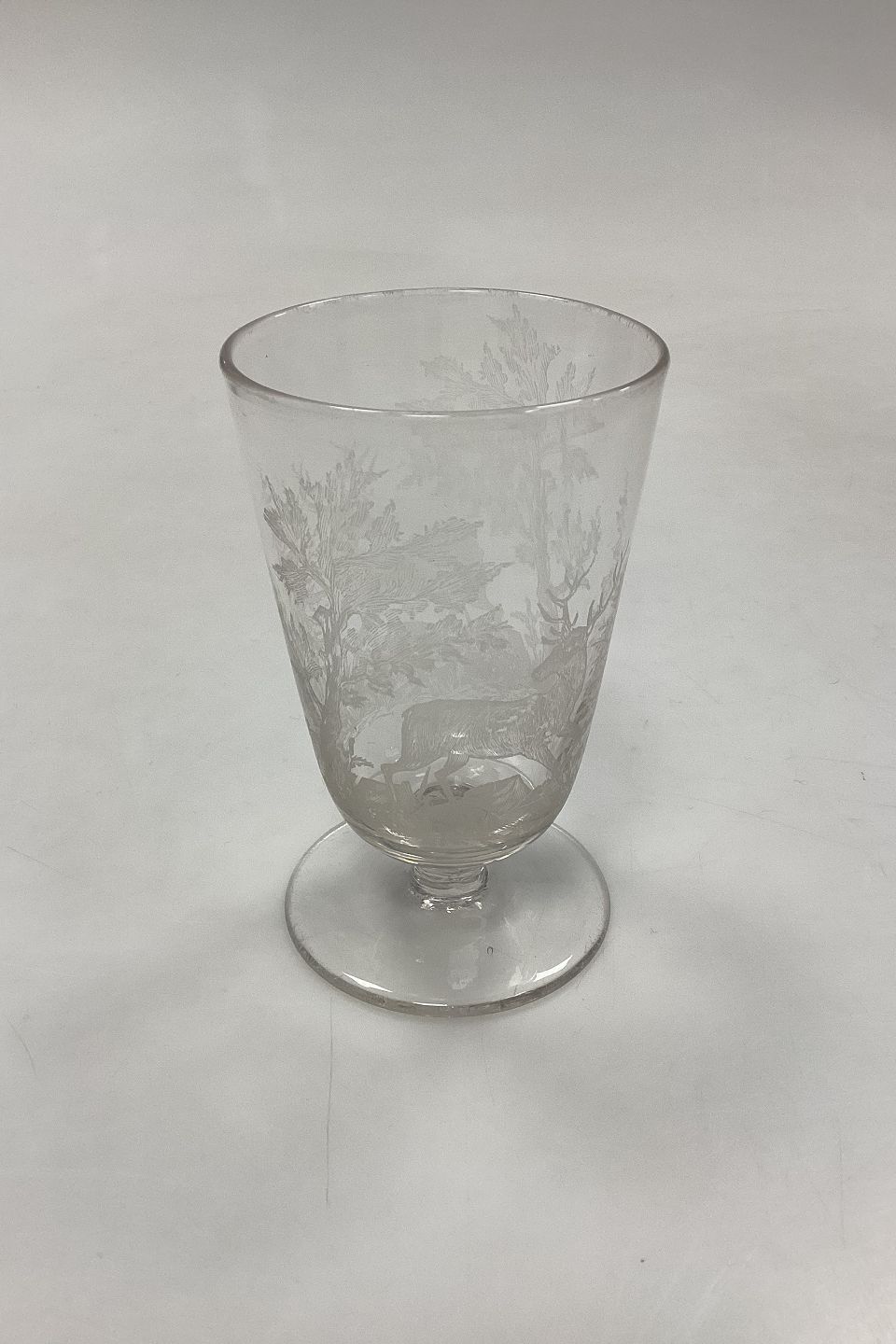 Red wine deer glass from Kastrup GlassworksHandmade with a beautifully cut pattern.