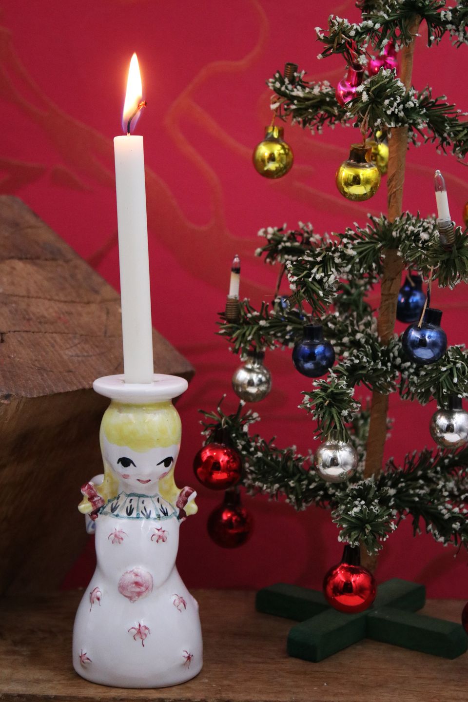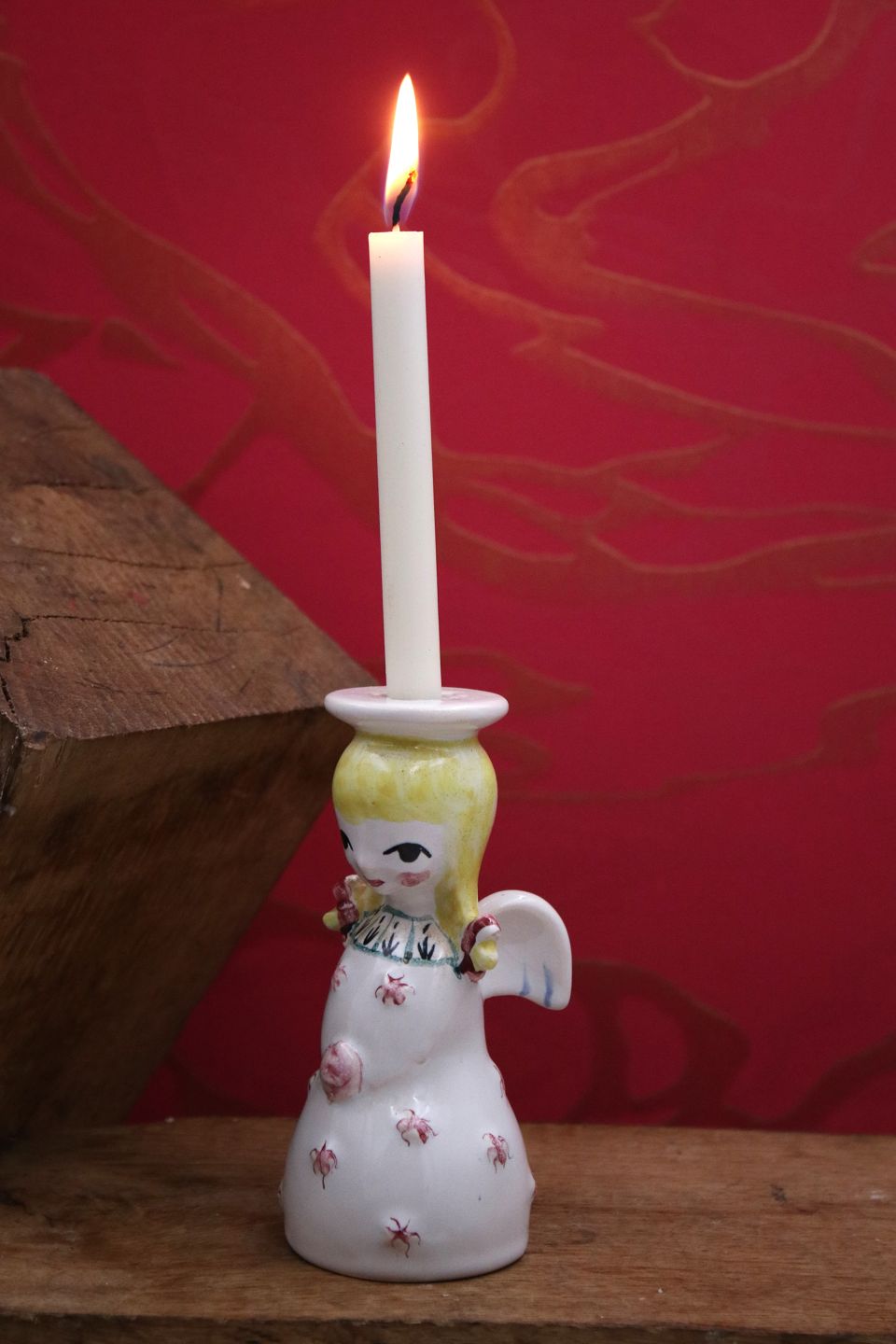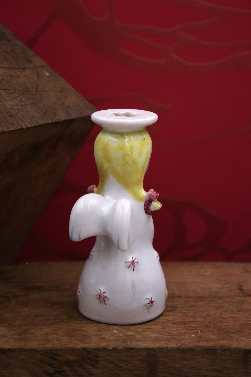 Nymolle Christmas angel with yellow hair in faience with space for a small fir branch or candle at the top. H: 12cm.Item number: Nymølle engel 2