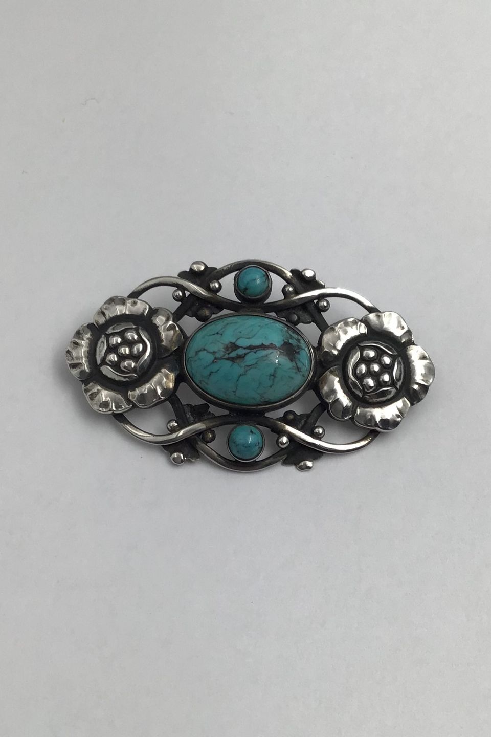 Georg Jensen Sterling Silver Brooch No. 89 (Turquoise) Measues 5.7 cm x 3.2 cm (2.24 inch x 1.25 inch) Weight 13.65 gr (0.48 oz)Stock: 1