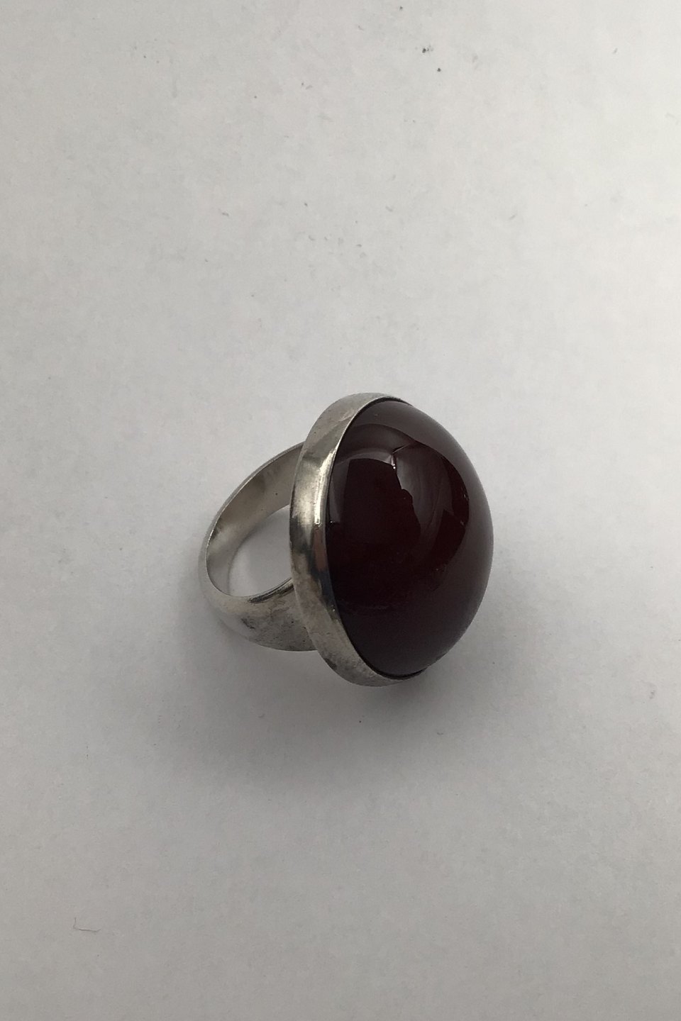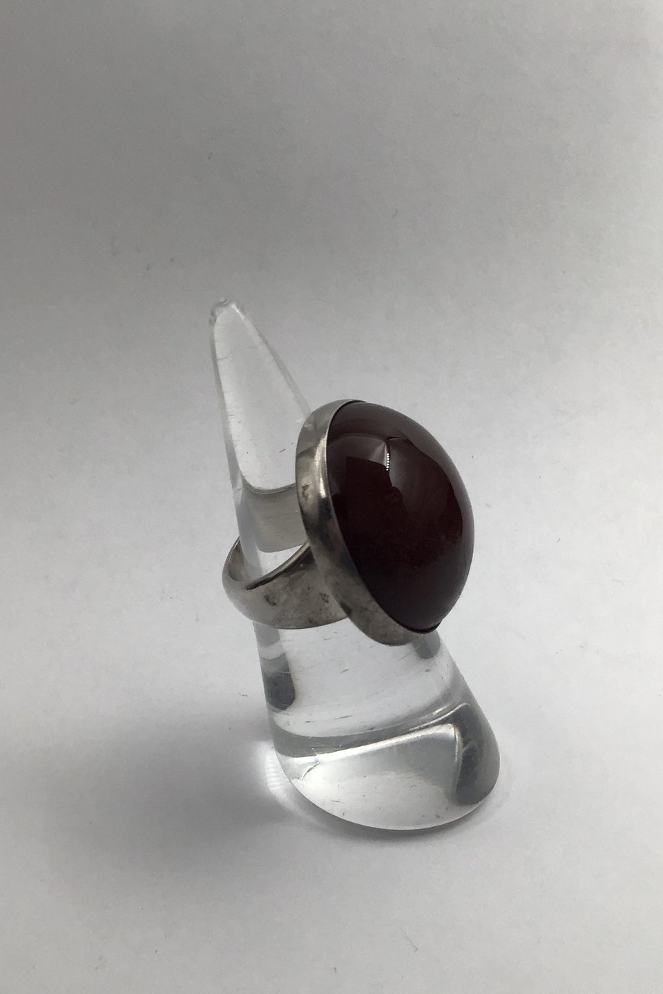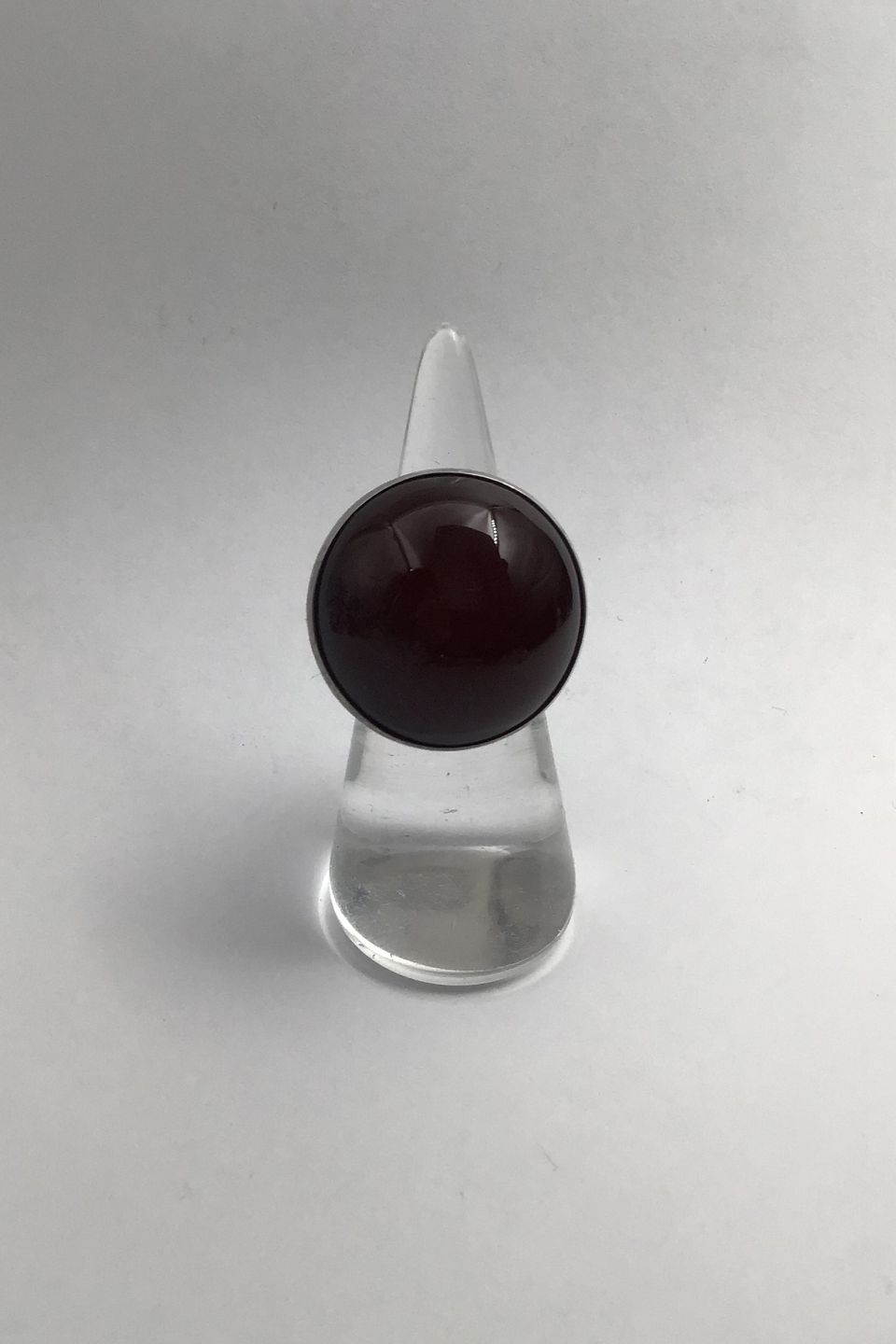 Georg Jensen Sterling Silver Ring No. 90 C (Red Brown Agate) Measures Diam 2.5 cm (0.98 inch) Ring Size 49 (US 5) Weight 14.8 (0.52 oz)Stock: 1