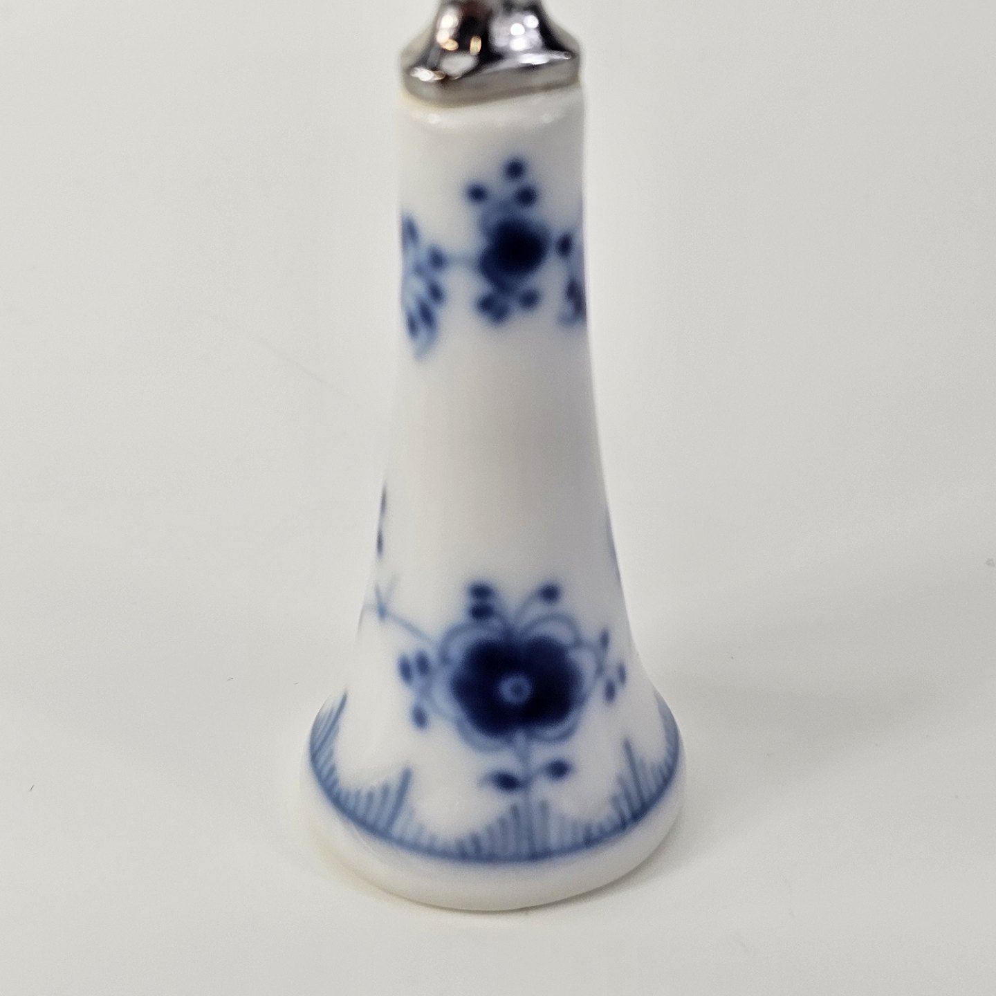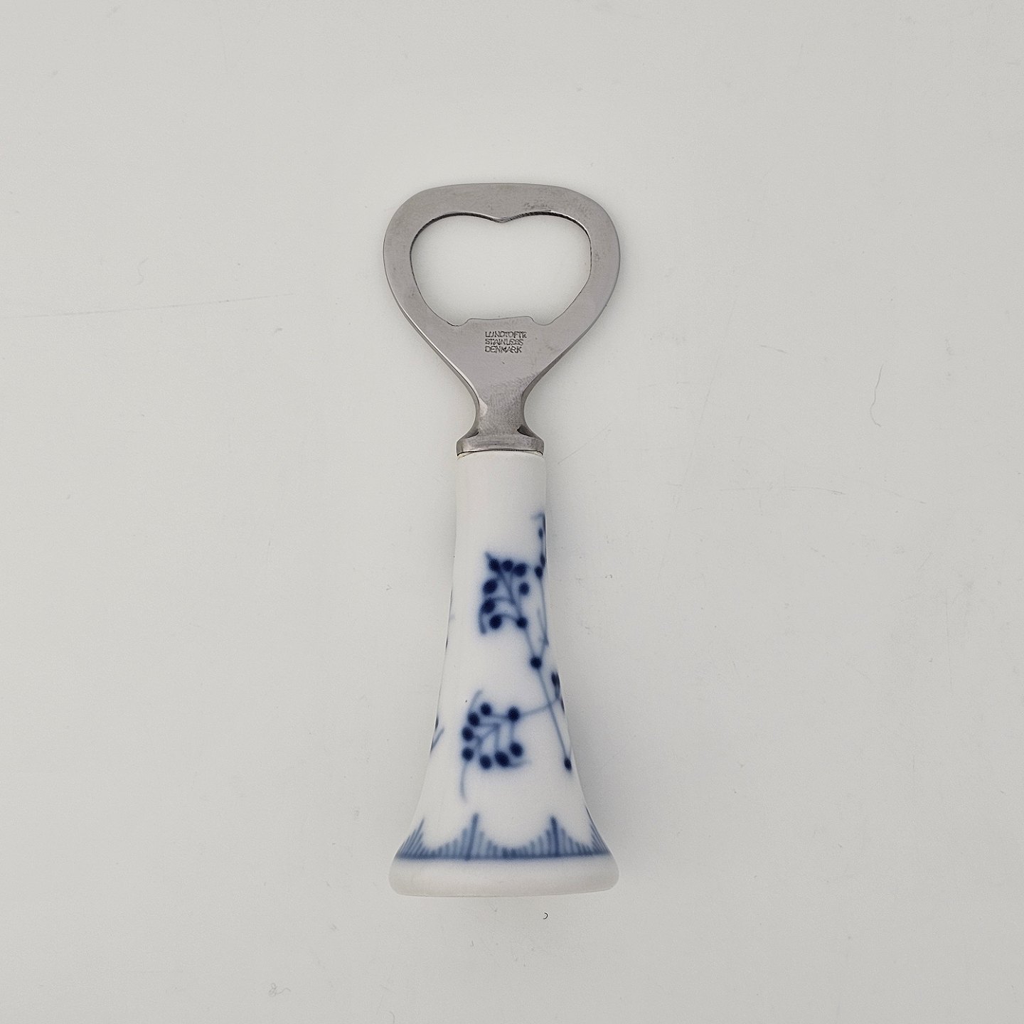 Oplukker i kongeligt porcelæn med hoved i rustfrit stål fra stellet Musselmalet.Nr. 1/2309