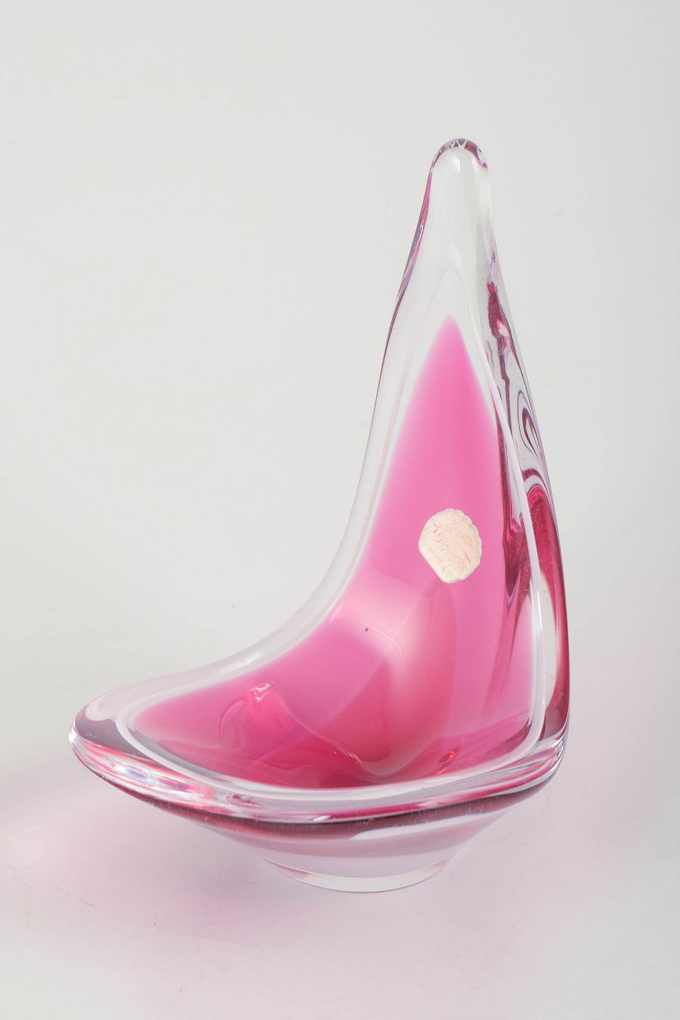 Paul Kedelv (1917–1990) developed the Coquille series at Flygfors in the mid-1950s, exploring layered colours, organic silhouettes, and sculptural aesthetics that became defining traits of Swedish art glass. Today, the series stands as a highly sought-after icon of Nordic mid-century design.