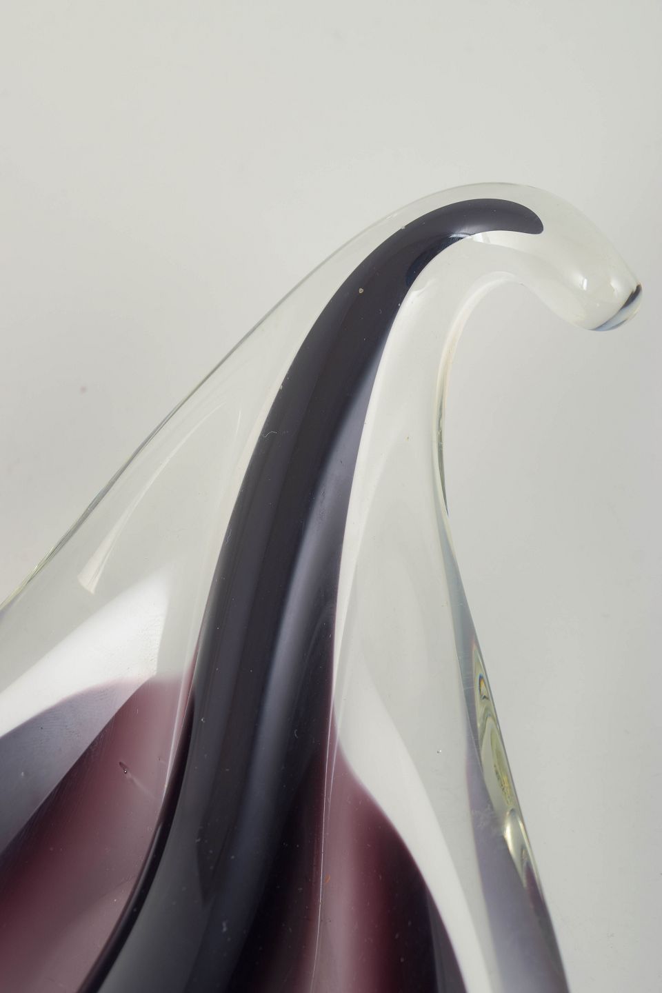 Organically shaped art-glass bowl in clear and violet-toned glass, mouth-blown with the characteristic sweeping form of Kedelv’s celebrated Coquille series.