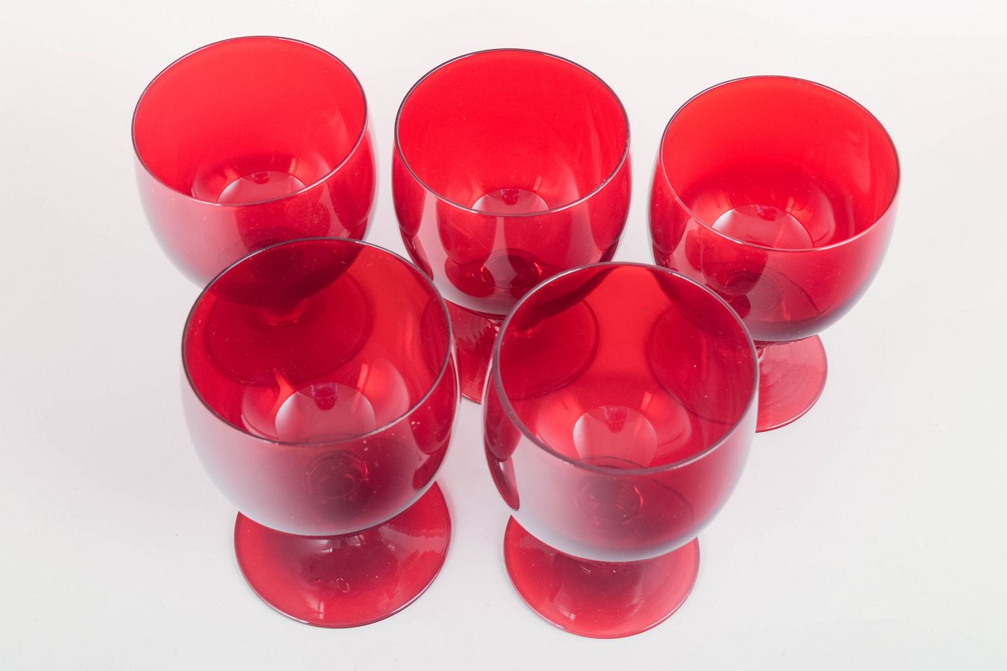 5 red wine glasses, 1950s.