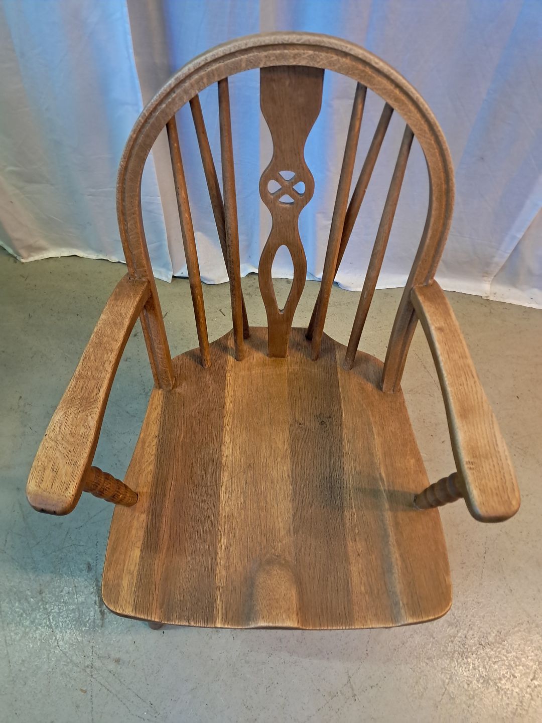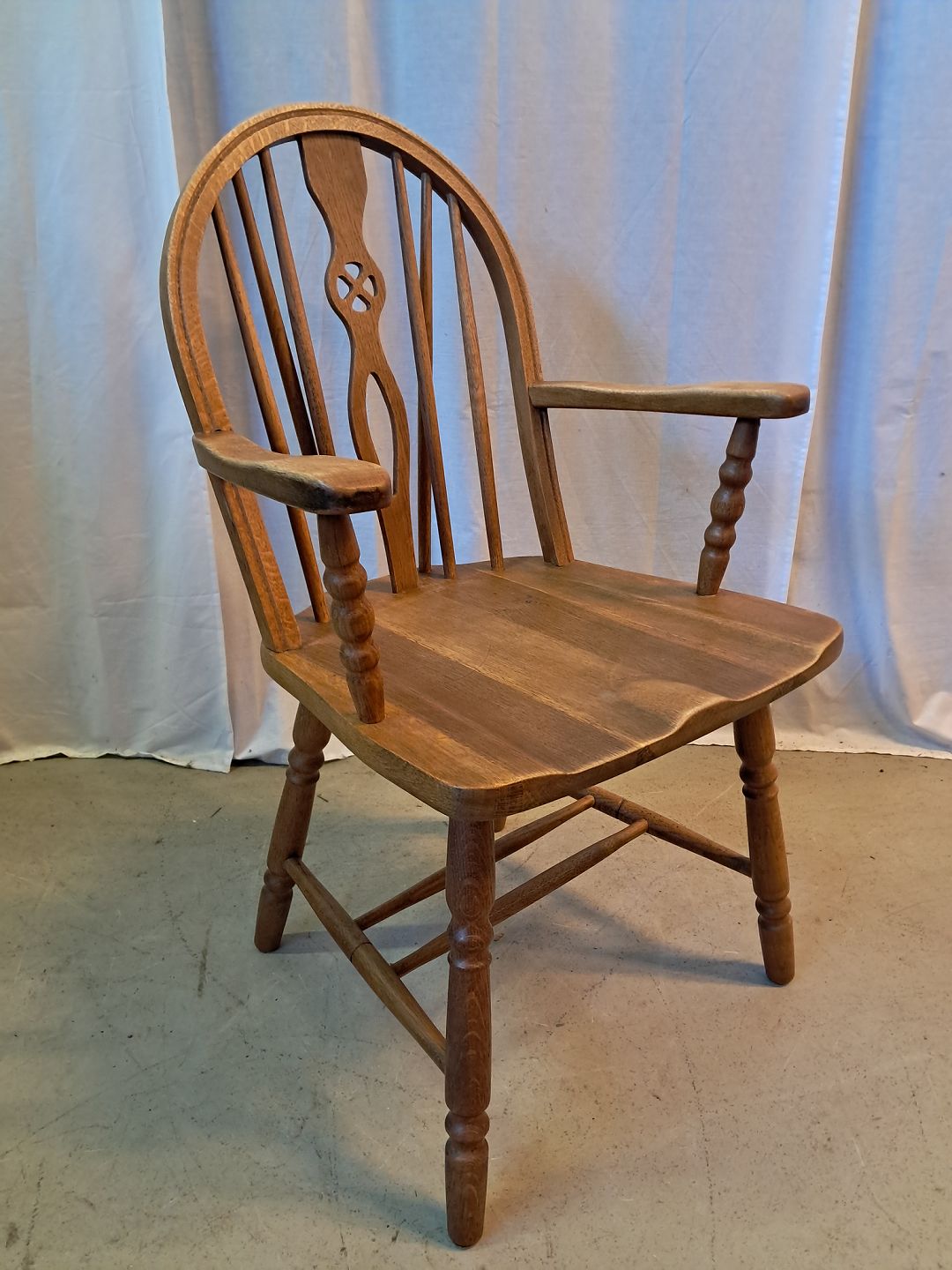 Winsor stol i massivt egetræ, fra 1970erne.Den har brugsspor.