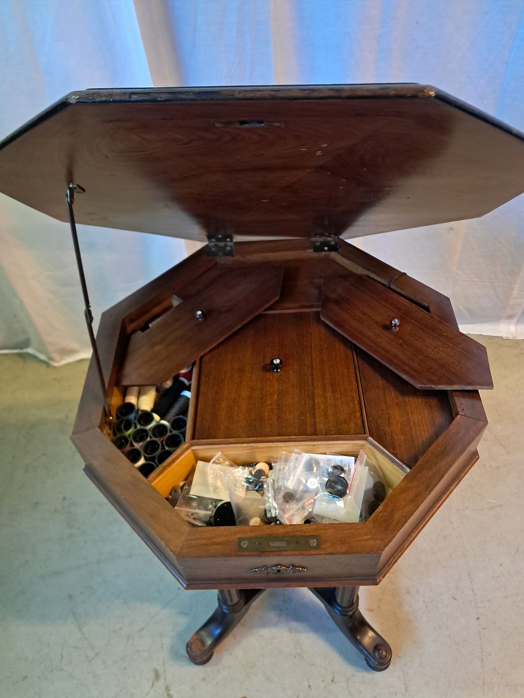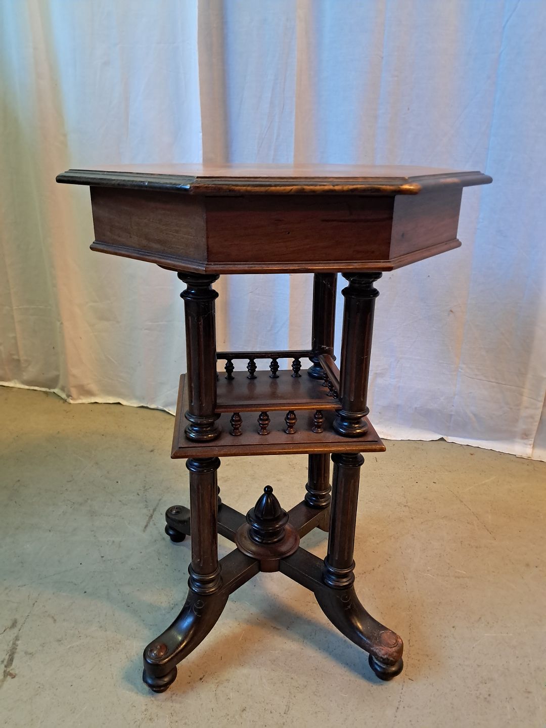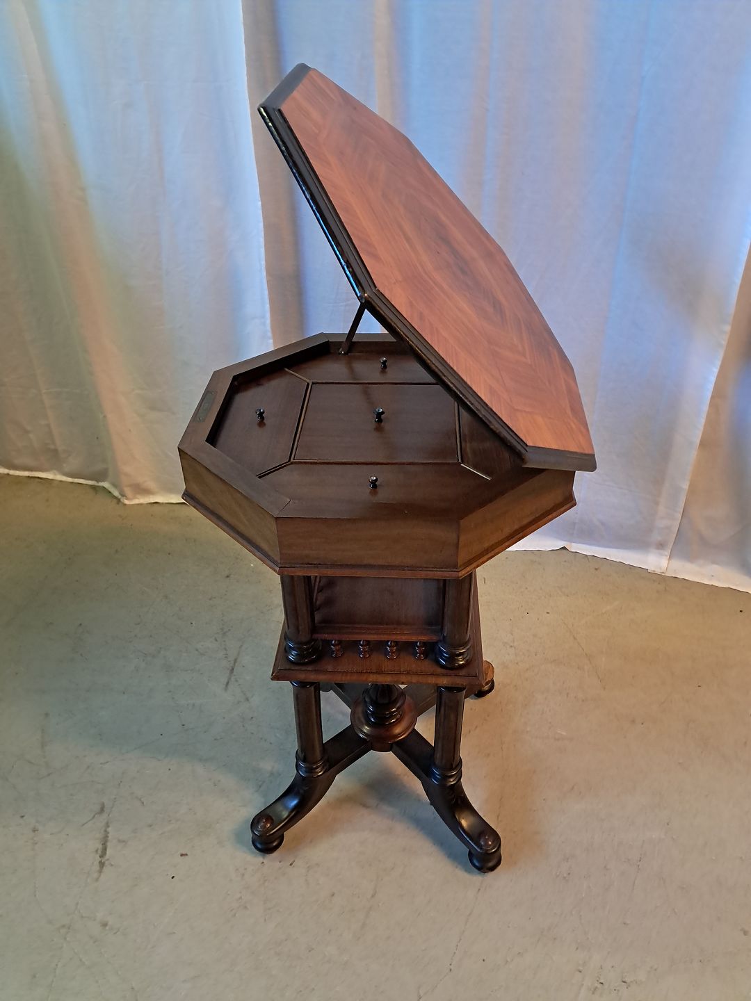 Sybord i fineret mahogni, fra 1910erne.Det har brugsspor.