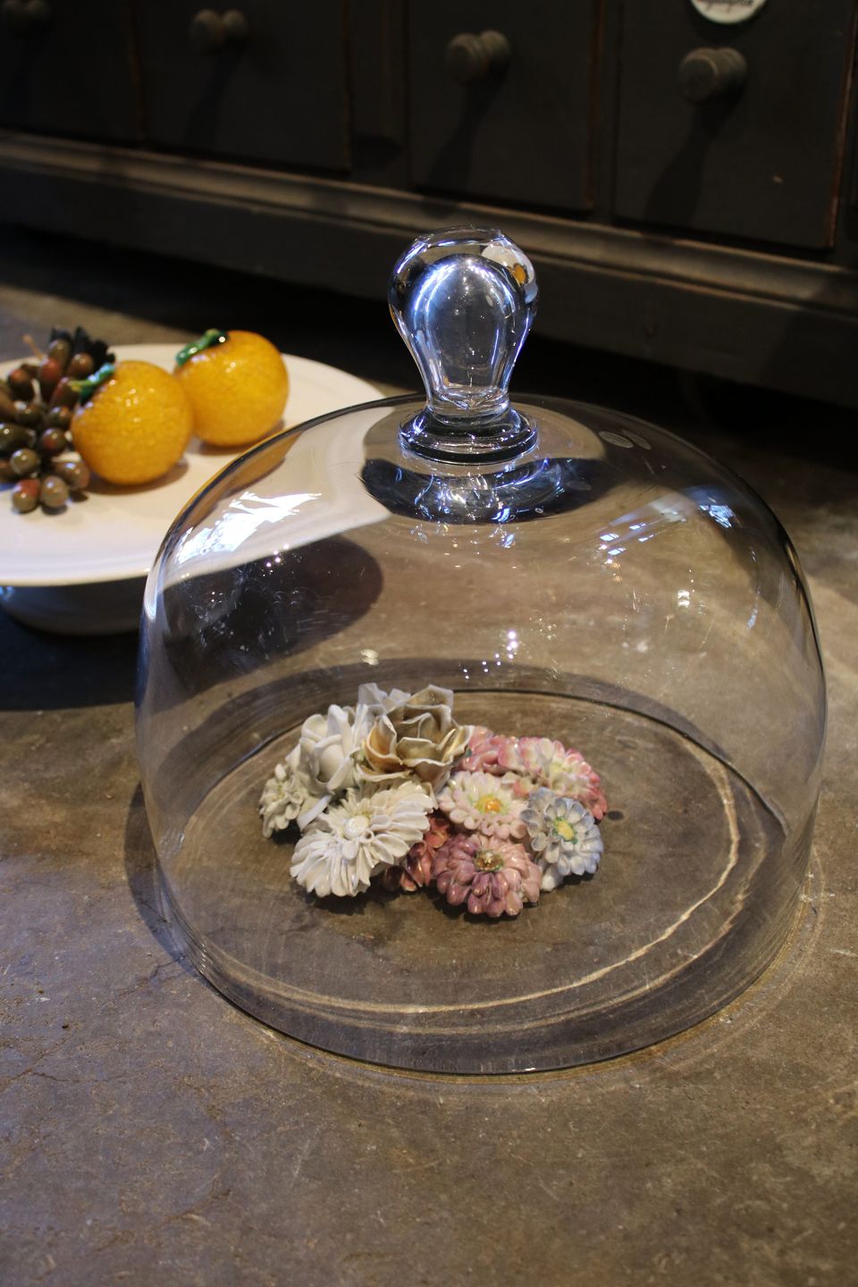 LARGE, old glass bell with knob in mouth-blown glass.Height: 30cm. Dia.: 30cm.