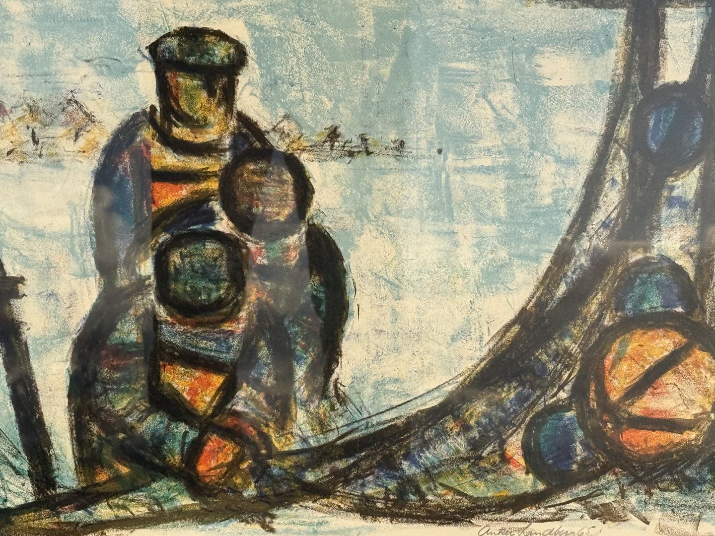 Anker Landberg, Lithograph in frame, Fishermen repairing nets, signed Anker Landberg 65, Dimensions: 67x46cm, Dimensions with frame: 82x63cm *fine condition*Stock: 1