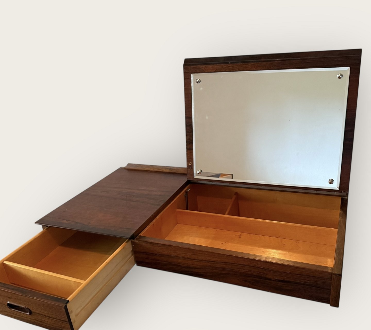 Wall-mounted dressing table / desk in rosewood, Danish modern from the 1960s. Dimensions: 91x50x25cm *In very nice used condition*Stock: 1