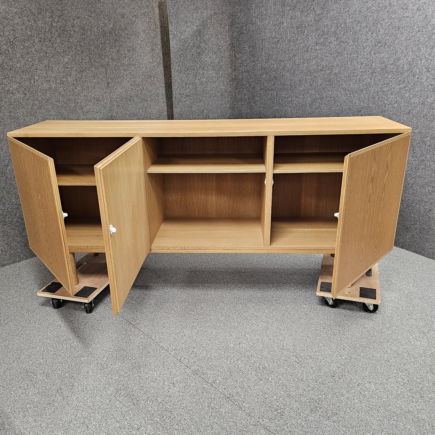 sman junior lav Skænk i egetræ med tre låger og runde benDesigner ukendt
