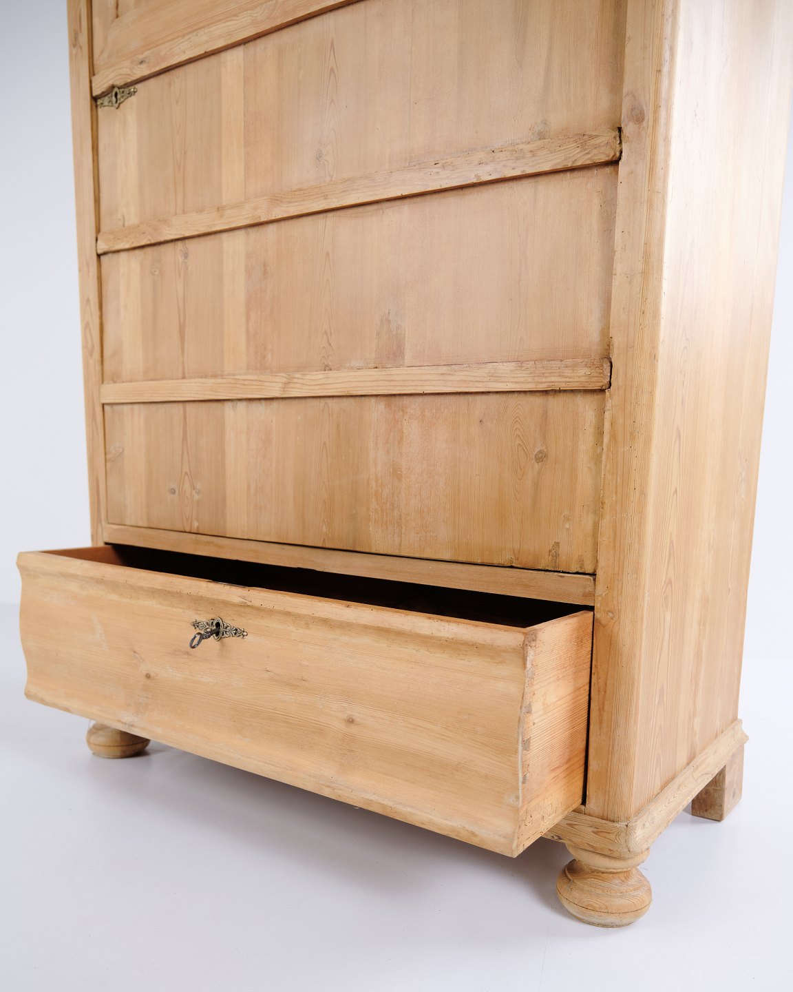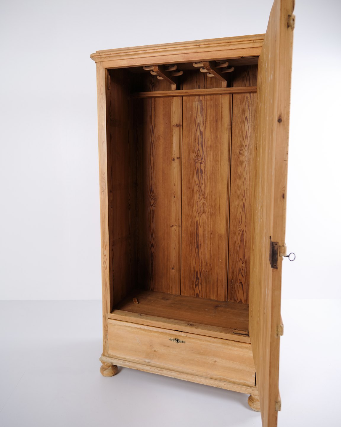 Karlekammerskab fra begyndelsen af 1900-tallet, udført i fyrretræ med et enkelt, klassisk formsprog. Skabet står på runde ben og har en frontlåge samt en praktisk skuffe nederst, hvilket giver opbevaringsplads.— Oprindelse: Europa