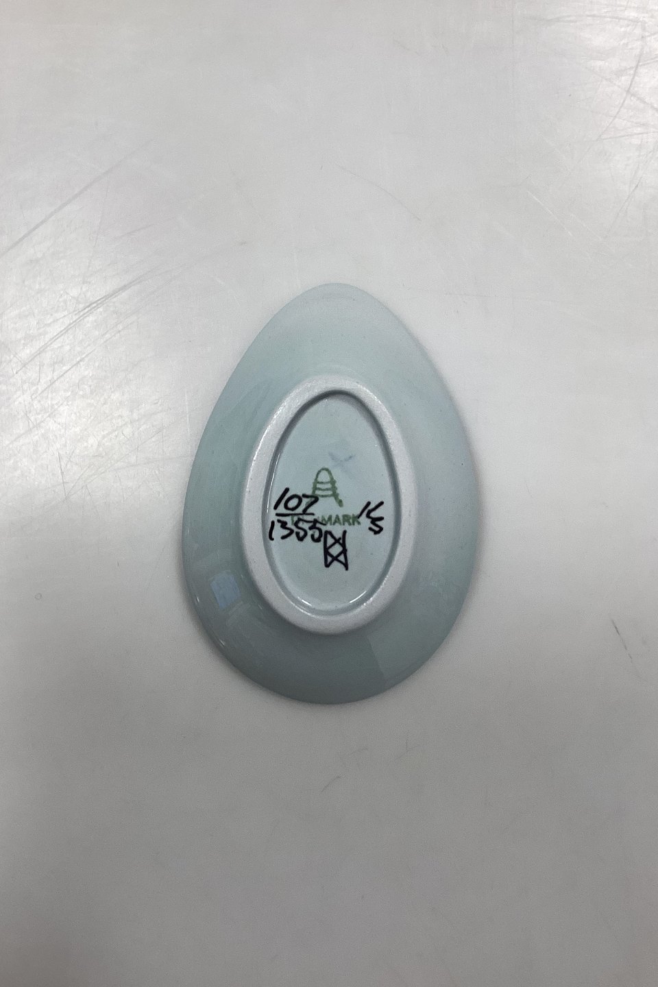 Aluminia Faience Tenera Smal Dish / Side Plate No. 107/1355. Motif: Bird in purple and blue. Designed by Beth Breyen.Measures 9.5 cm x 6.5 cm / 3.74 in. x 2.55 in.