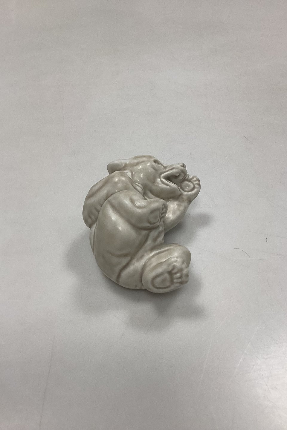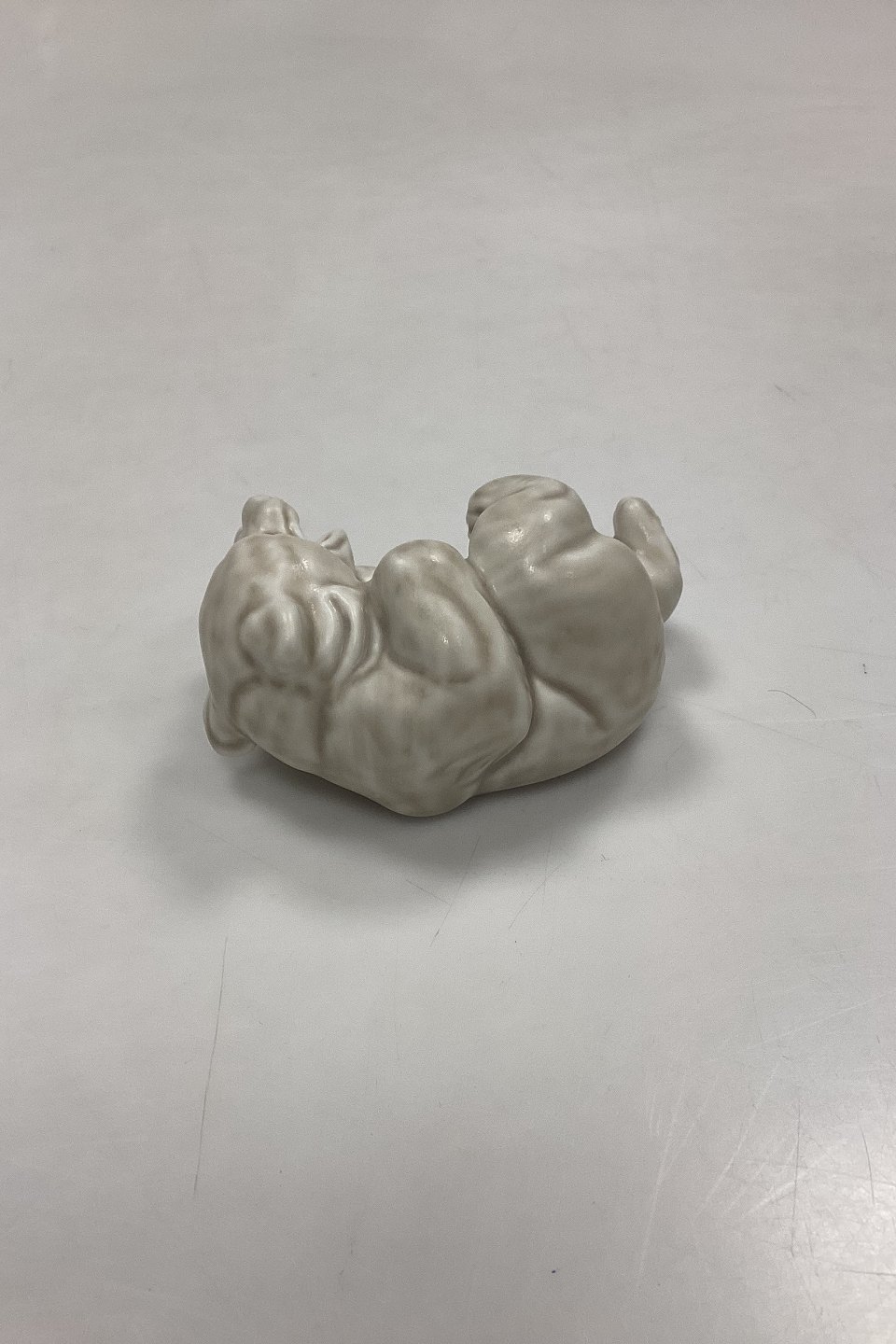 Royal Copenhagen Stoneware Figurine White Bear Cub No. 21432. Designed by Knud Kyhn. Matt glaze in white-beige shades.Measures 4 x 9 cm / 1.57 in. x 3.54 in.