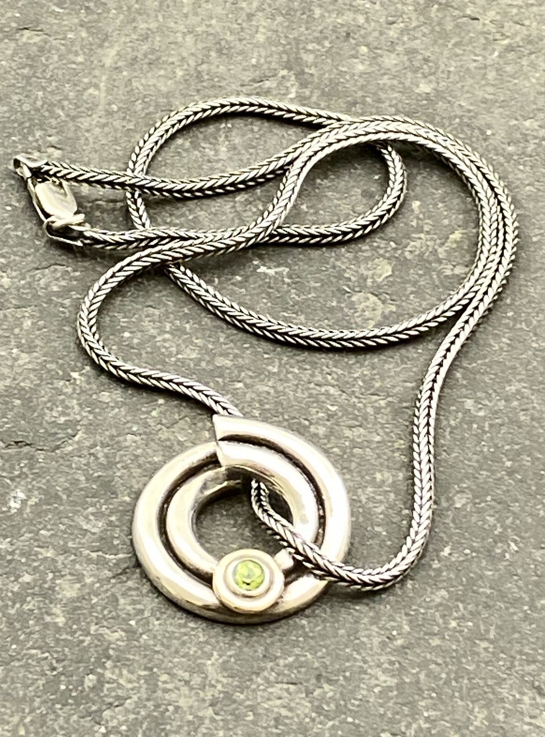 Sterling silver pendant D.2.5 cm. with sea green semi-precious stone and 45 cm. sterling silver chain item no. 626583 Dealer