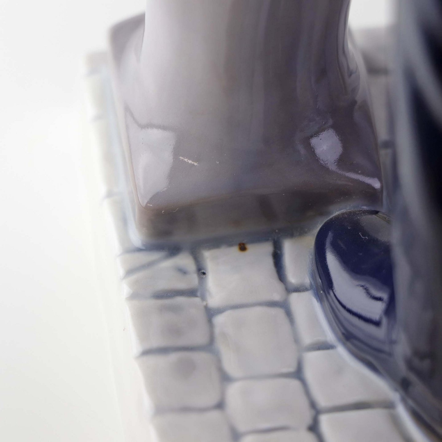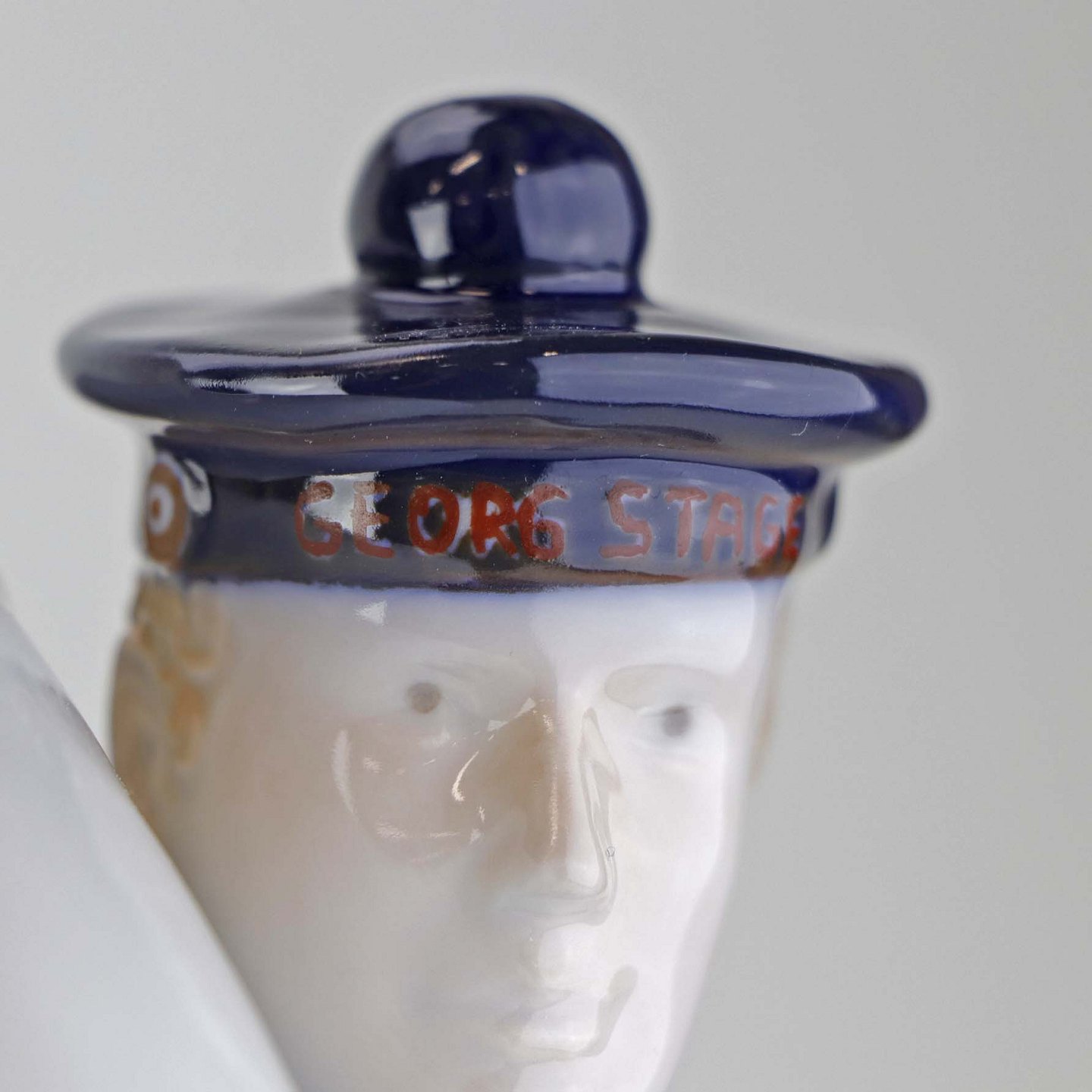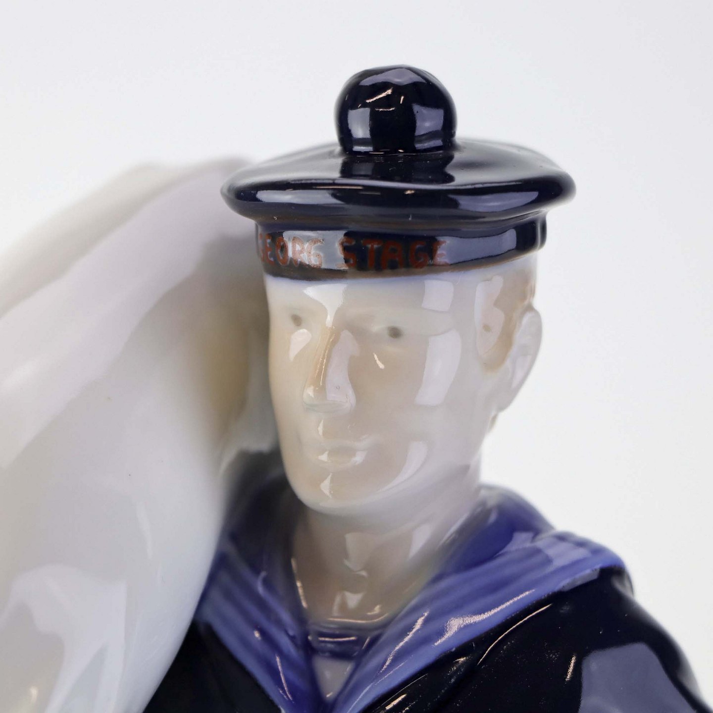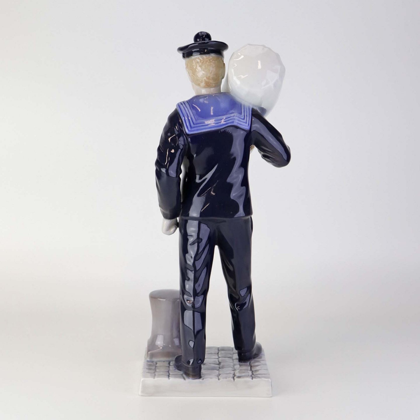 Figur i porcelæn med motiv af Matros med vadsæk fra skibet George Stage. Nr. 2456Producent Bing & Grøndahl
