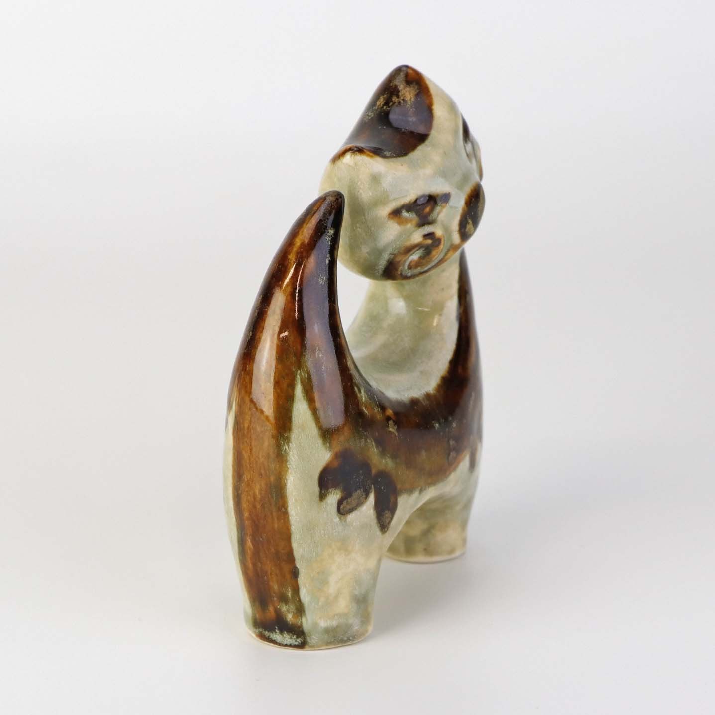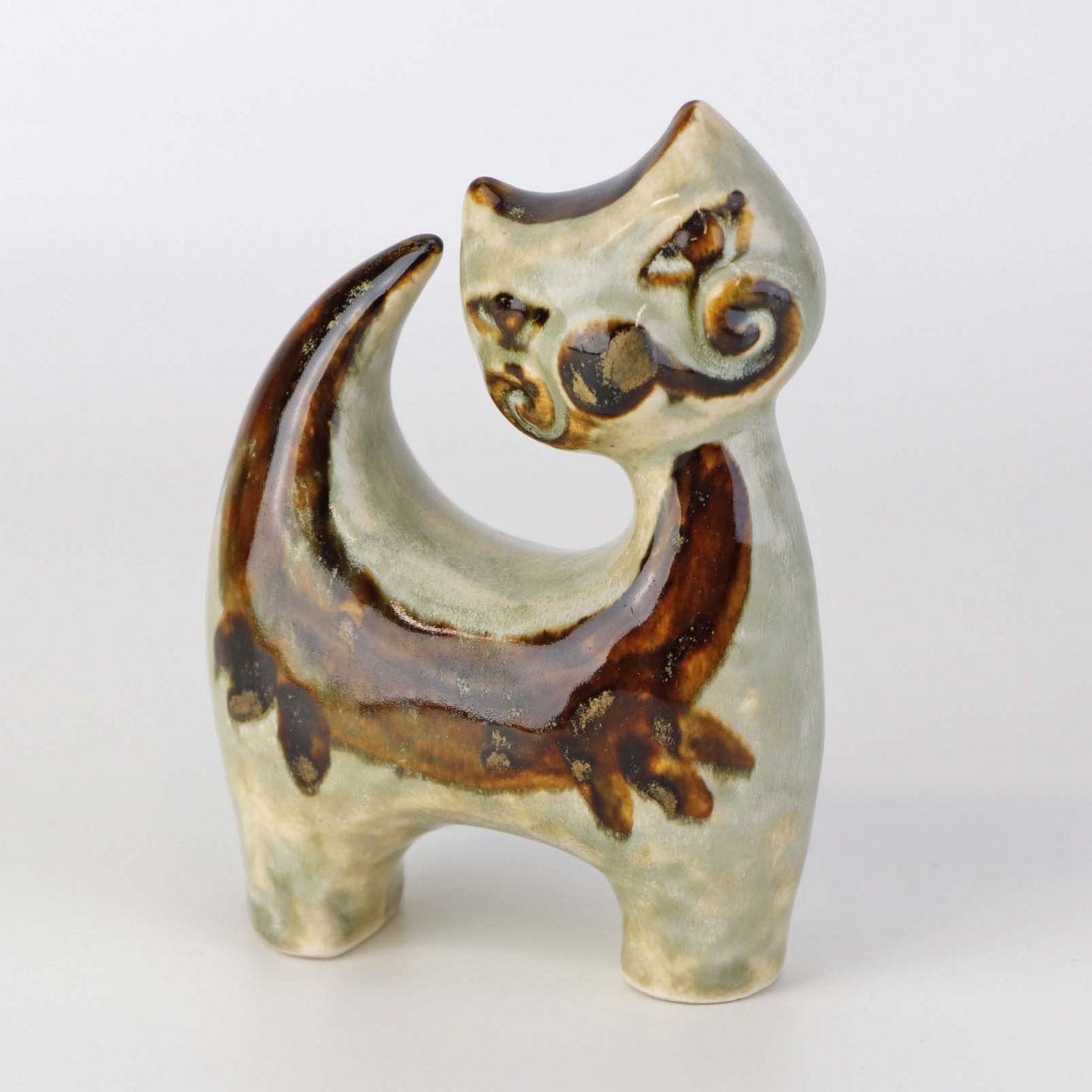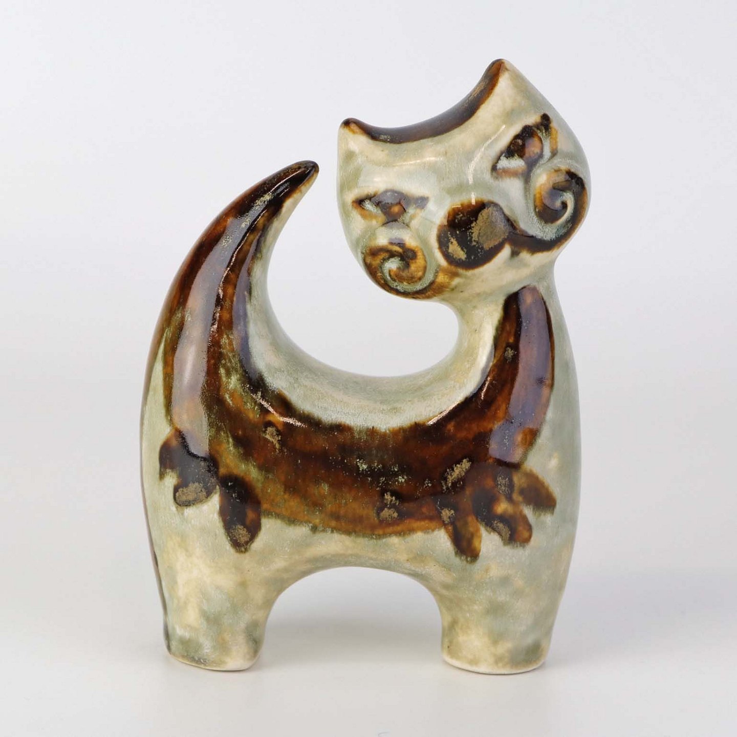 Figur i glaseret keramik med motiv af en kat.Producent Søholm keramik