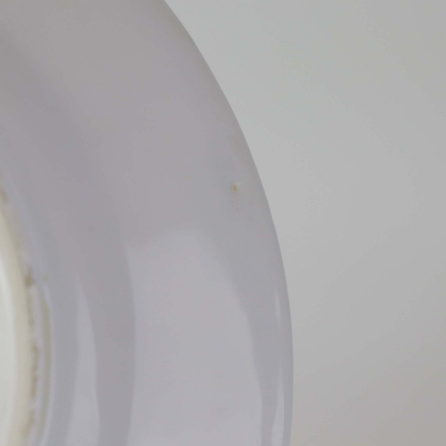 Fremstår med lettere slid i glasuren samt ujævnhed i porcelænet på bagsiden.