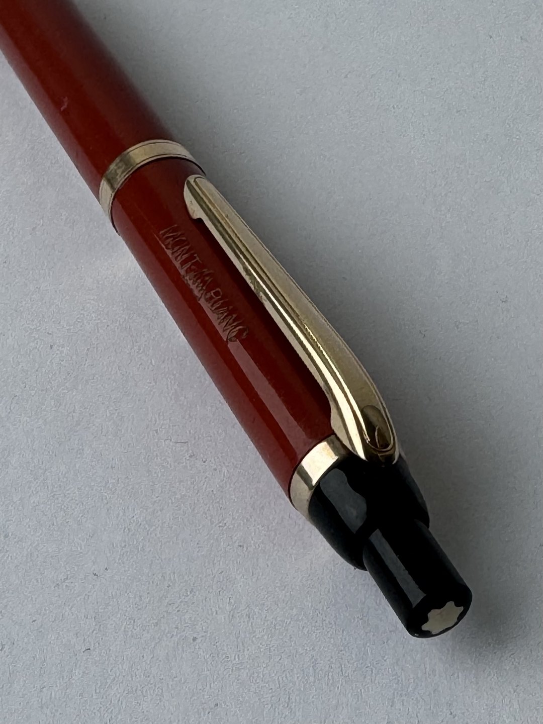 Coral red Montblanc no. 25 mechanical pencil / mechanical pencil / pencil from the 1950s. Appears in very good condition. Ready to be used. Product name and model number imprinted on the pen. L. 12.2 cm Dealer