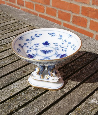 Butterfly (Sommerfugl) with gold rim or Kipling B&G China porcelain dinnerware by Bing & Grondahl, Denmark.Elegant centerpiece for confectionery or snacks No 451 of 2nd choice. The bowl is carried by 3 dolphins and is in a good used condition.
