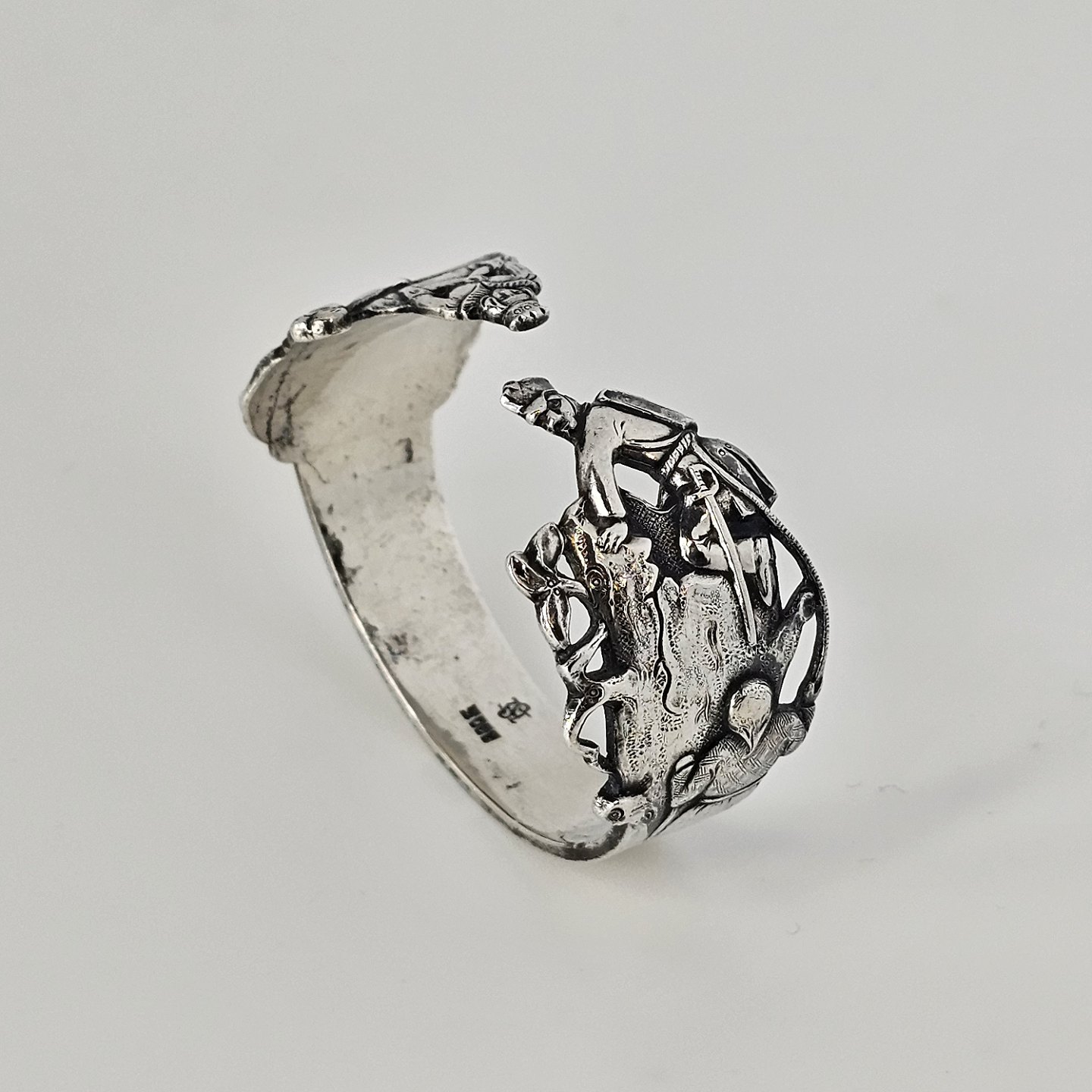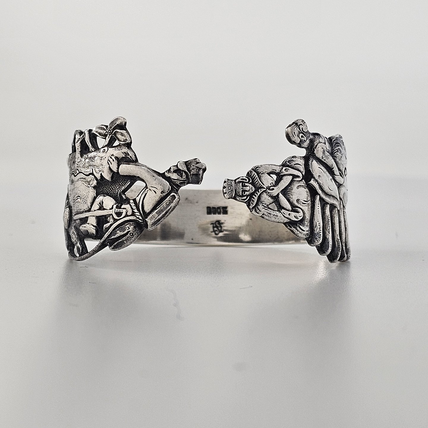 Servietring i sølv 830S med motiv af H.C. Andersens Prinsessen på Ærten og FyrtøjetProducent Horsens Sølvvarefabrik
