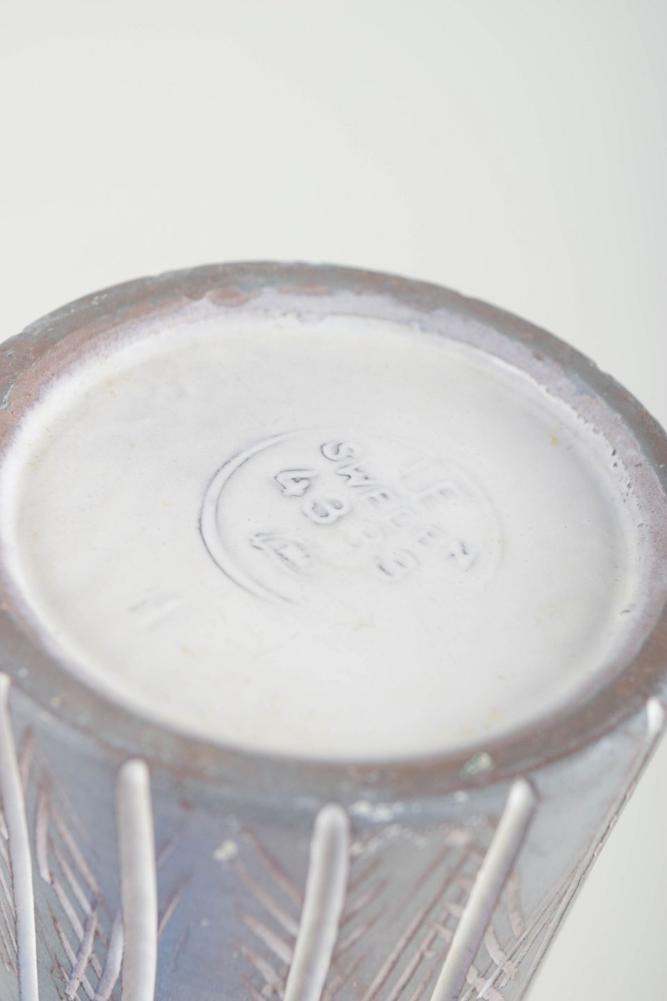 Mari Simmulson (1911–2000) was one of Upsala-Ekeby’s most influential designers, working for the factory from 1949 to 1972. Her works are recognised for their distinctive forms, decorative patterns and elegant colour palettes. Many of her designs were produced in limited quantities, making them highly collectible today.