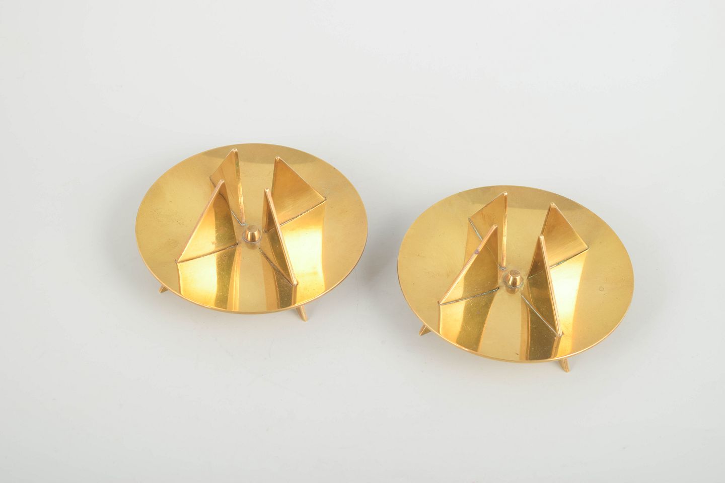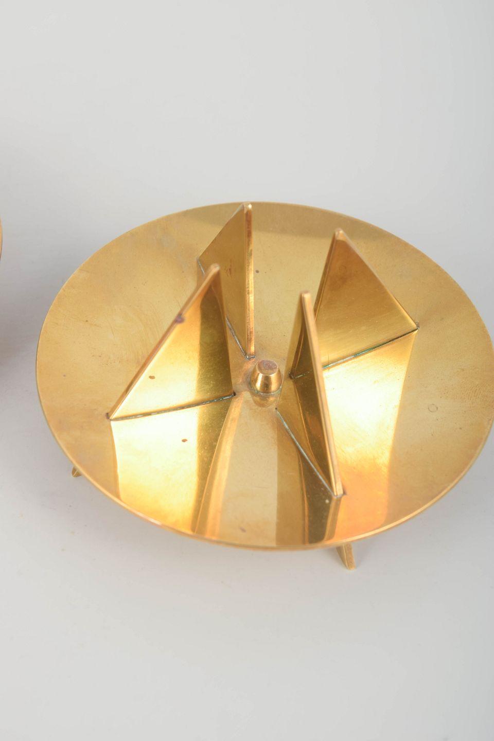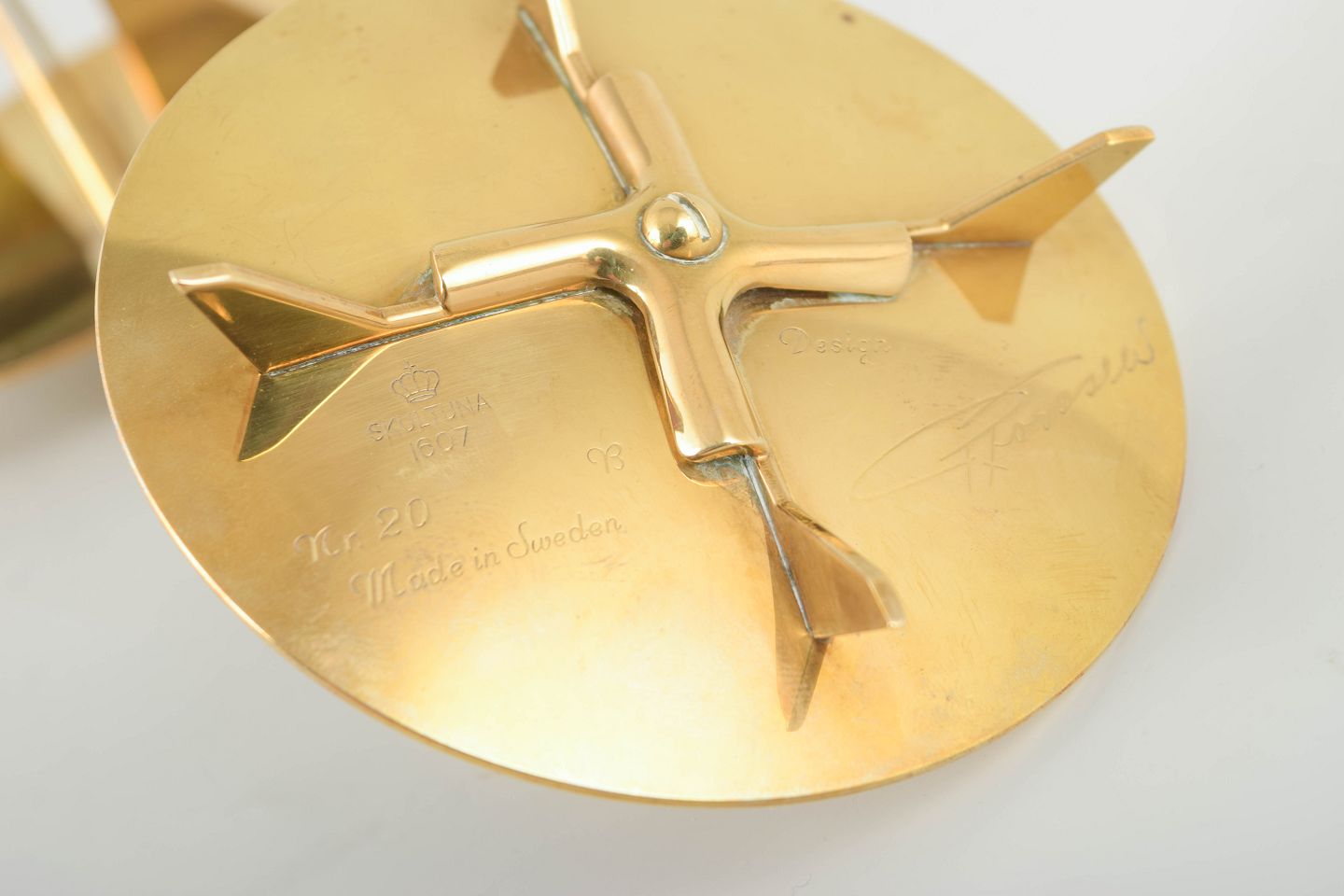 Elegant and sculptural design in solid brass with characteristic geometric elements, typical of Forsell’s modernist expression for Skultuna.
