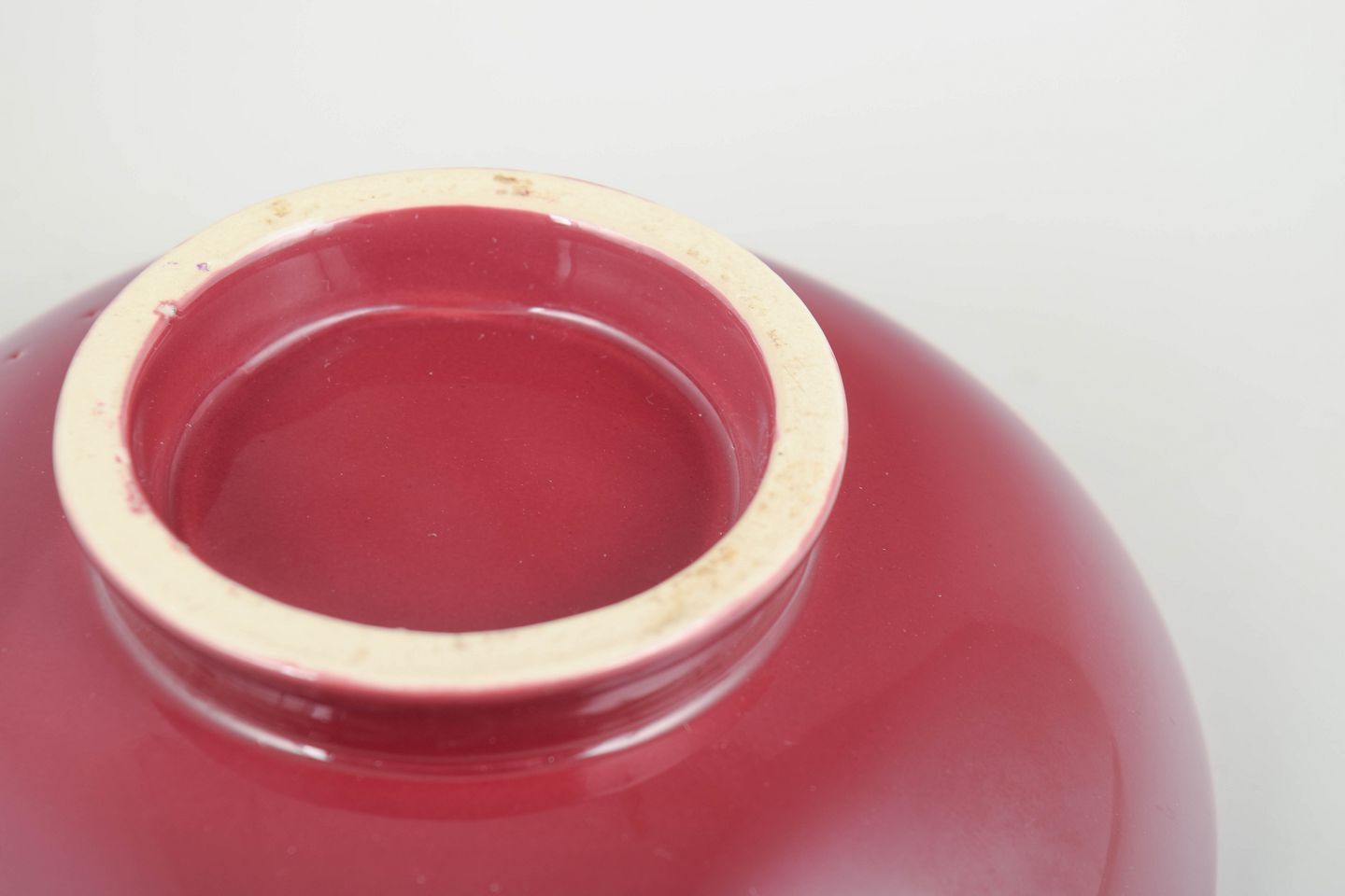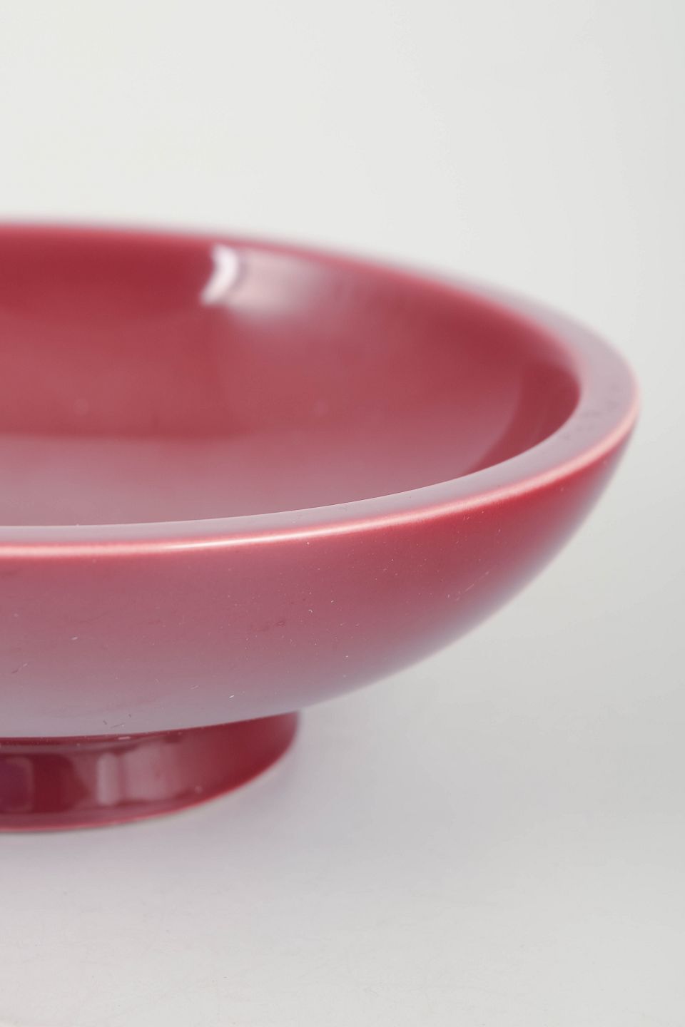 Rare bowl in red glaze, with low foot and refined, minimalist form. Unsigned.