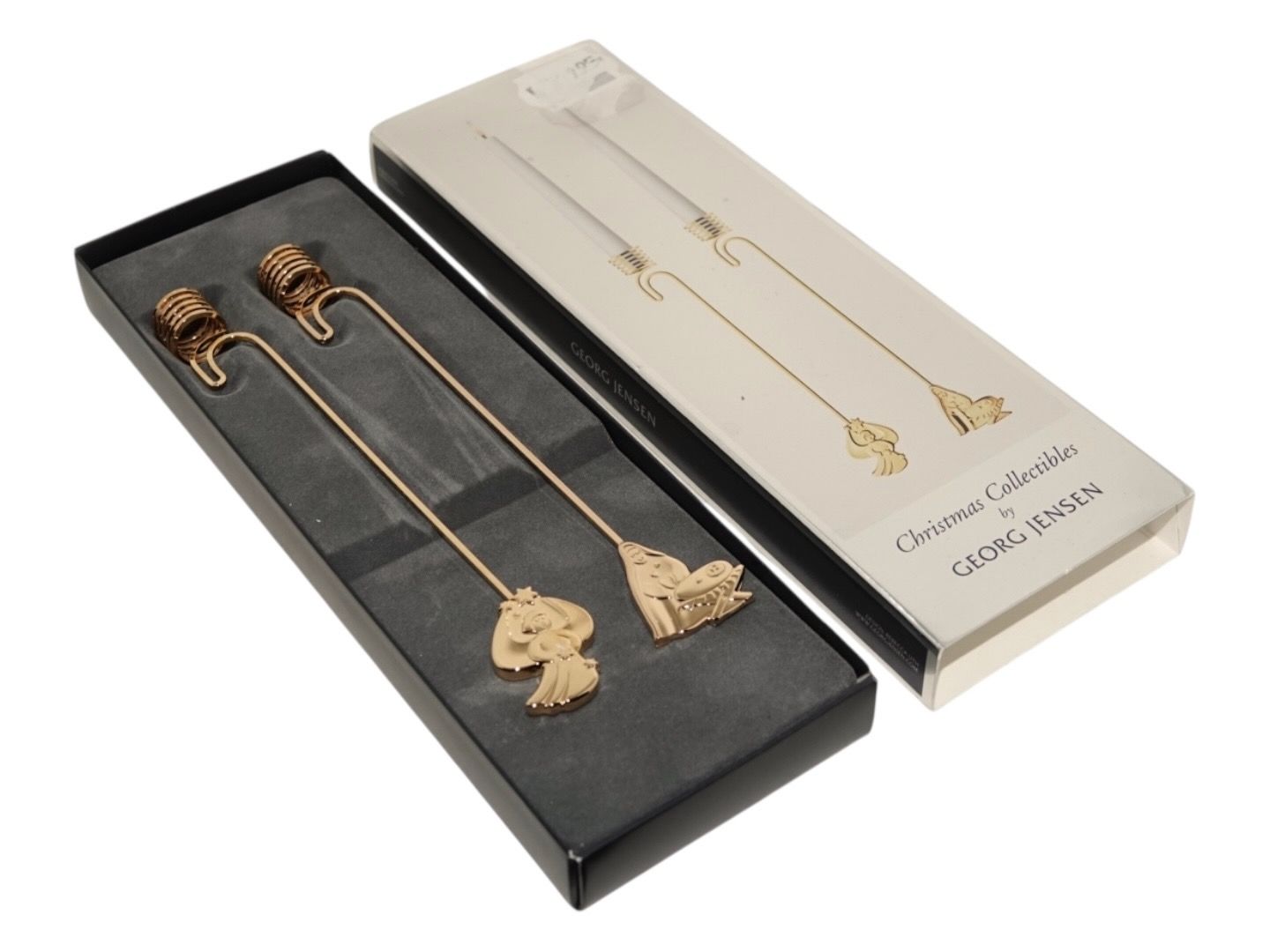 Georg Jensen Golden Christmas Two Golden Christmas Candle holders - Angel and Virgin Mary and Jesus from 2012.Measures 15 cm.