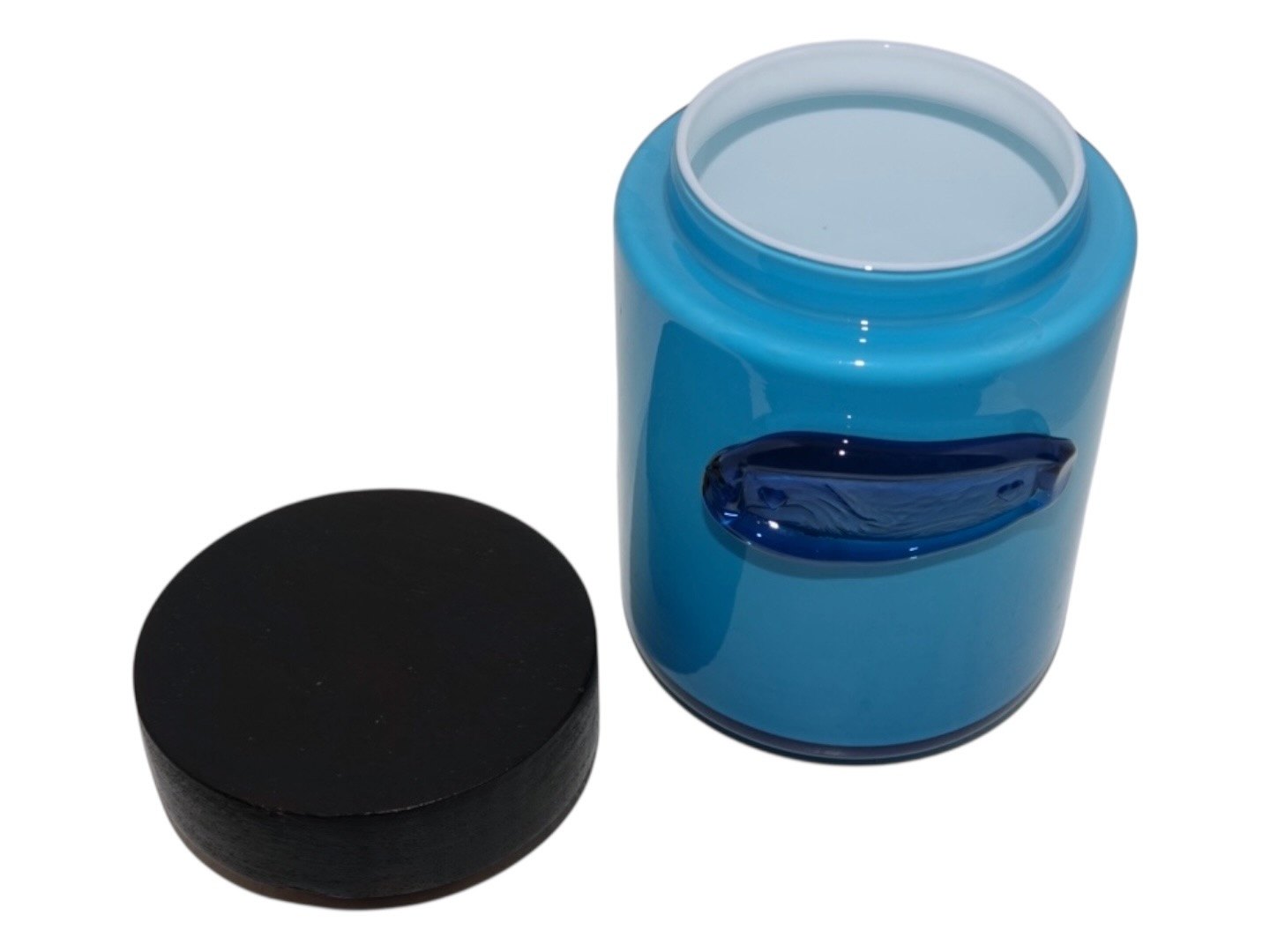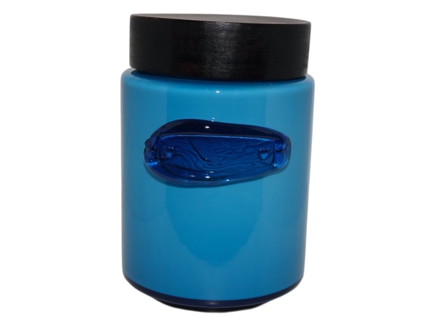 Holmegaard Palet, blue lidded jar with no text.Designed by Michael Bang in 1970.
