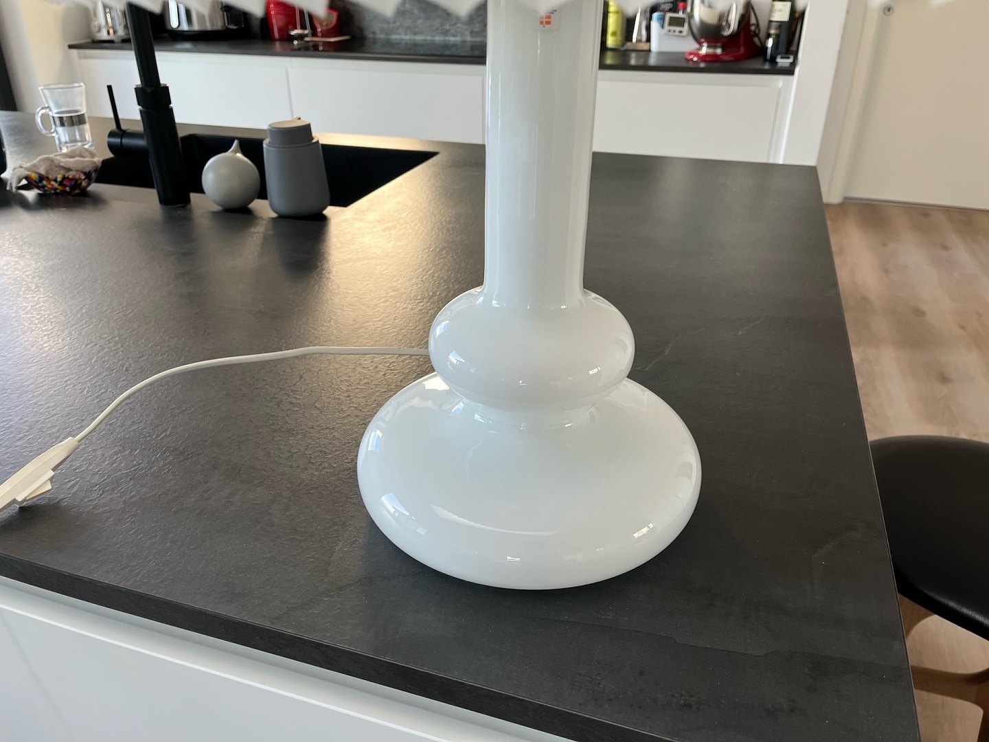Plaza table lamp in opal glass, manufactured by Holmegaard Glasvark, production period 1978-1984. The lamp is in like new condition. Our concept. Purchase of newer/used furniture. Thorough cleaning and treatment. Viewing by appointment. Free delivery throughout Denmark for purchases over 10,000,- See also our other designer furniture from, among others, Poul Kj�rholm, Mogens Hansen, S�ren Lund, Arne Jacobsen, J�rgen Gammelgaard, Nielaus, Skalma, Fritz Hansen, Cph, Skovby, Boconcept, and many others on our website Mrretrodesign.dk Dealer