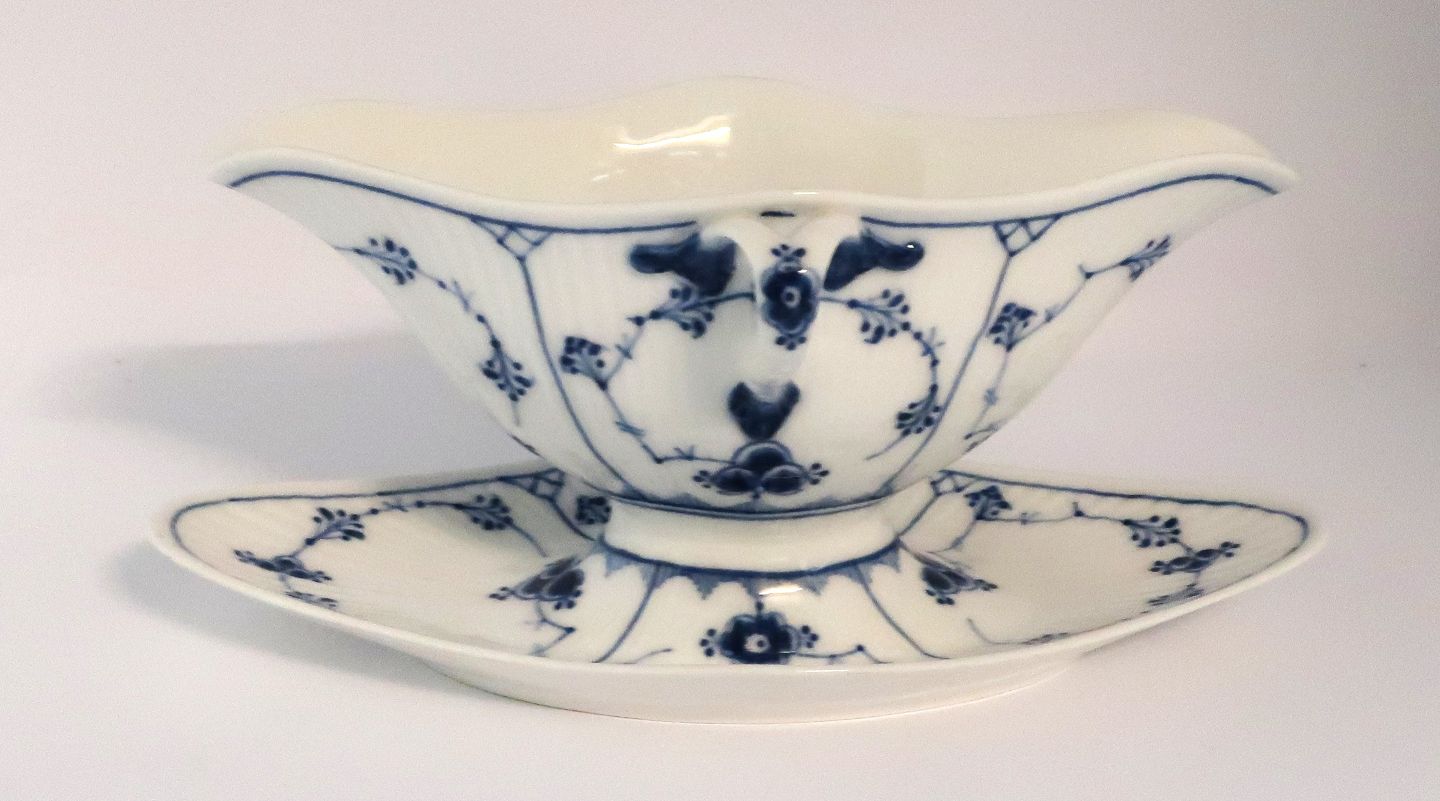 Royal Copenhagen. Blue fluted, plain. Sauce bowl. Model 202. Length 24.5 cm. (1 quality). Produced before 1923 Dealer