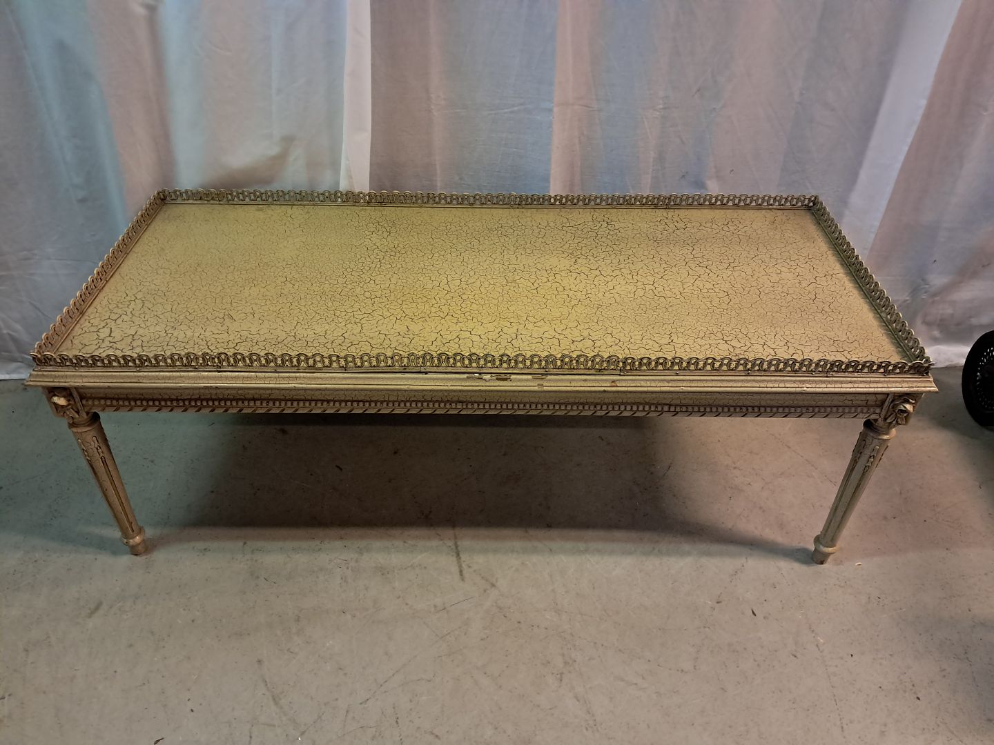 Malet sofabord med metalkant, fra 1980erne.Det har brugsspor.