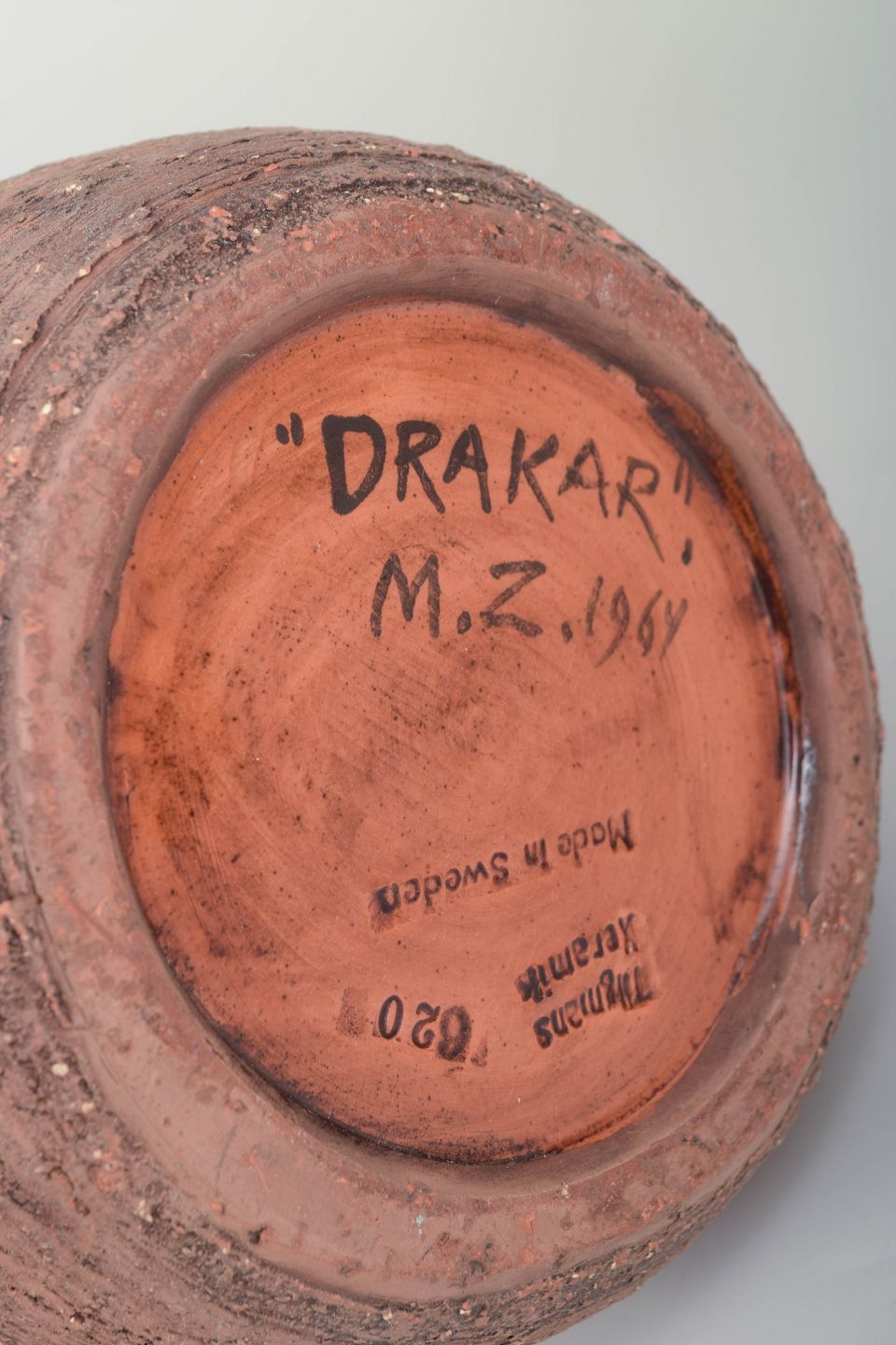 Antoni Marian Zawadzki (1916–1995) was one of the leading designers at Tilgmans Keramik. Working mainly in chamotte, he became known for his incised or modelled motifs of birds, animals and fantastical creatures, often paired with bold colours and a raw textured surface. His pieces—especially the large floor vases—are highly sought after today for their distinctive 1960s artistic character.