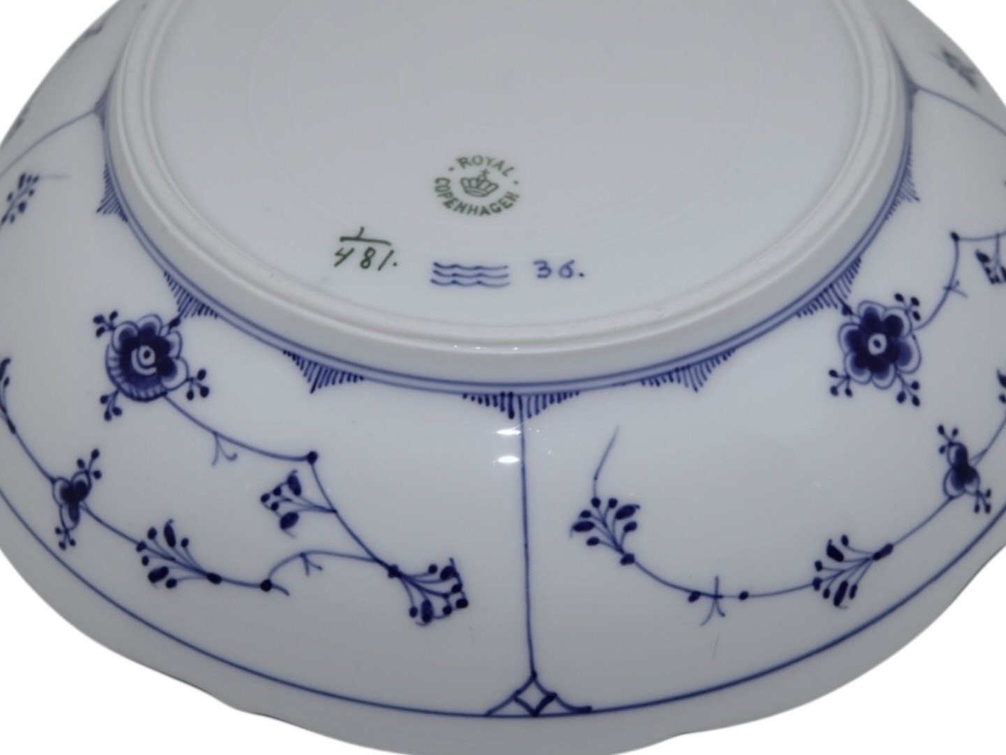 Royal Copenhagen Blue Fluted Plain, round bowl with edgy border.The factory mark tells, that this was produced between 1898 and 1923.