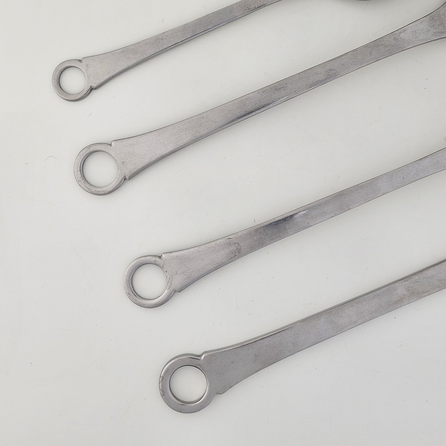 Bestik i rustfrit stål fra serien Pantry bestående af kniv, gaffel, spiseske og teskeFormgiver Henning Seidelin