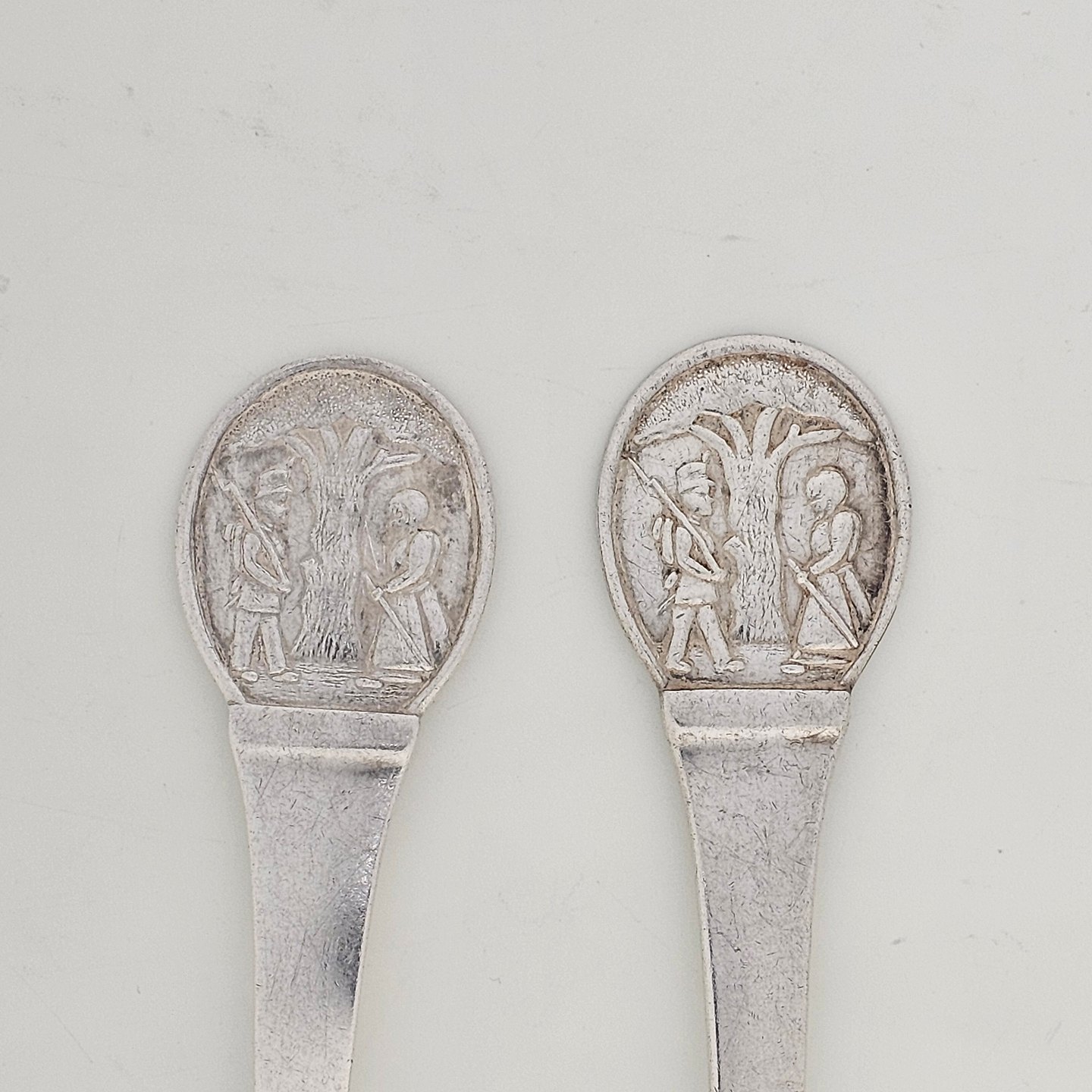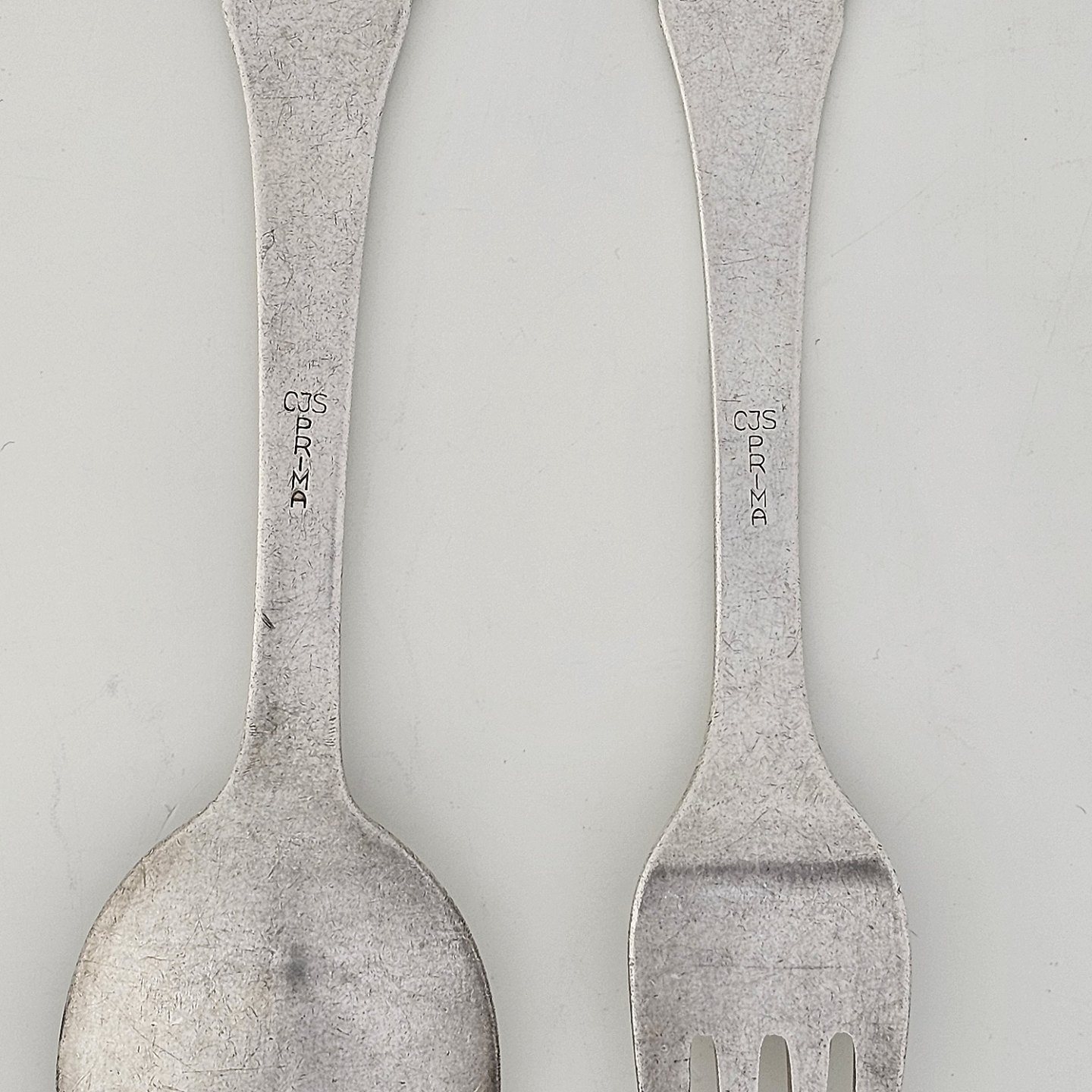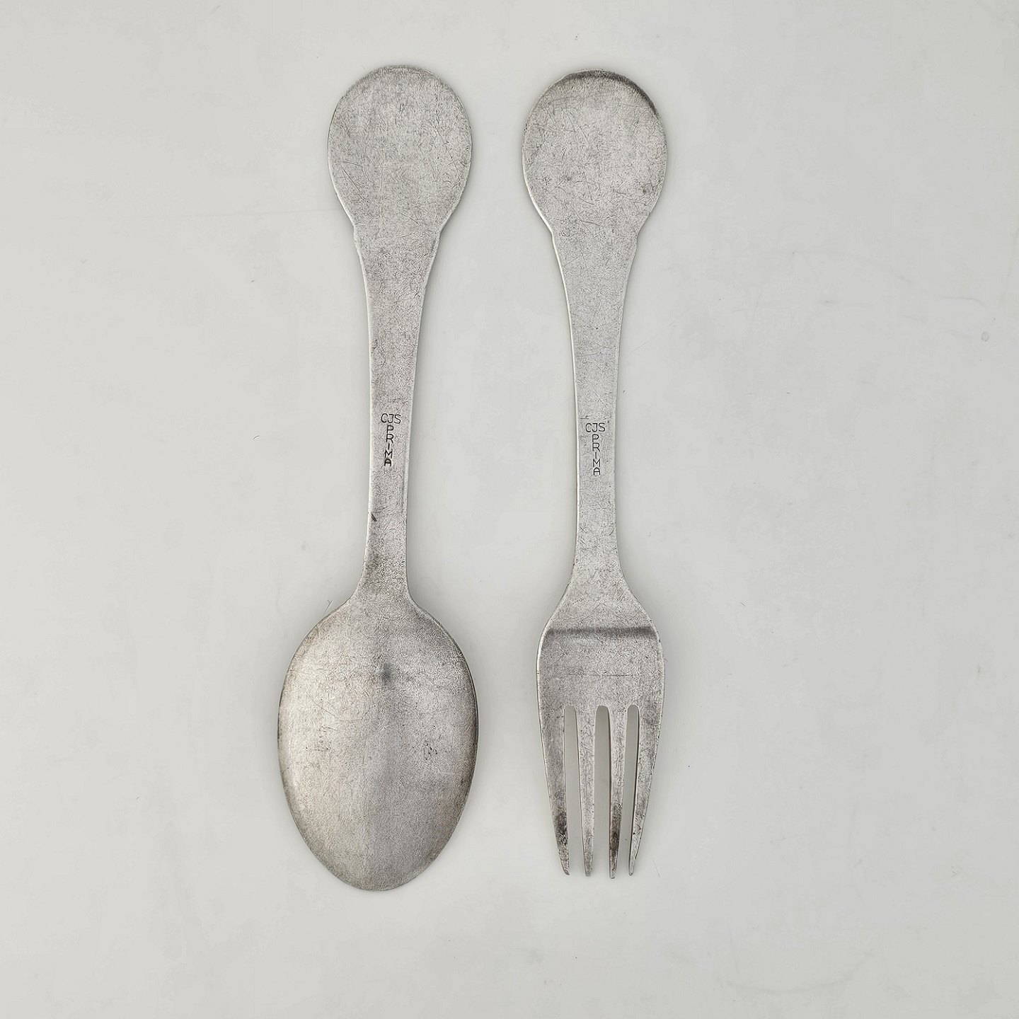 Gaffel og ske af pletsølv med motiv af H.C. Andersens FyrtøjetProducent CJS Prima