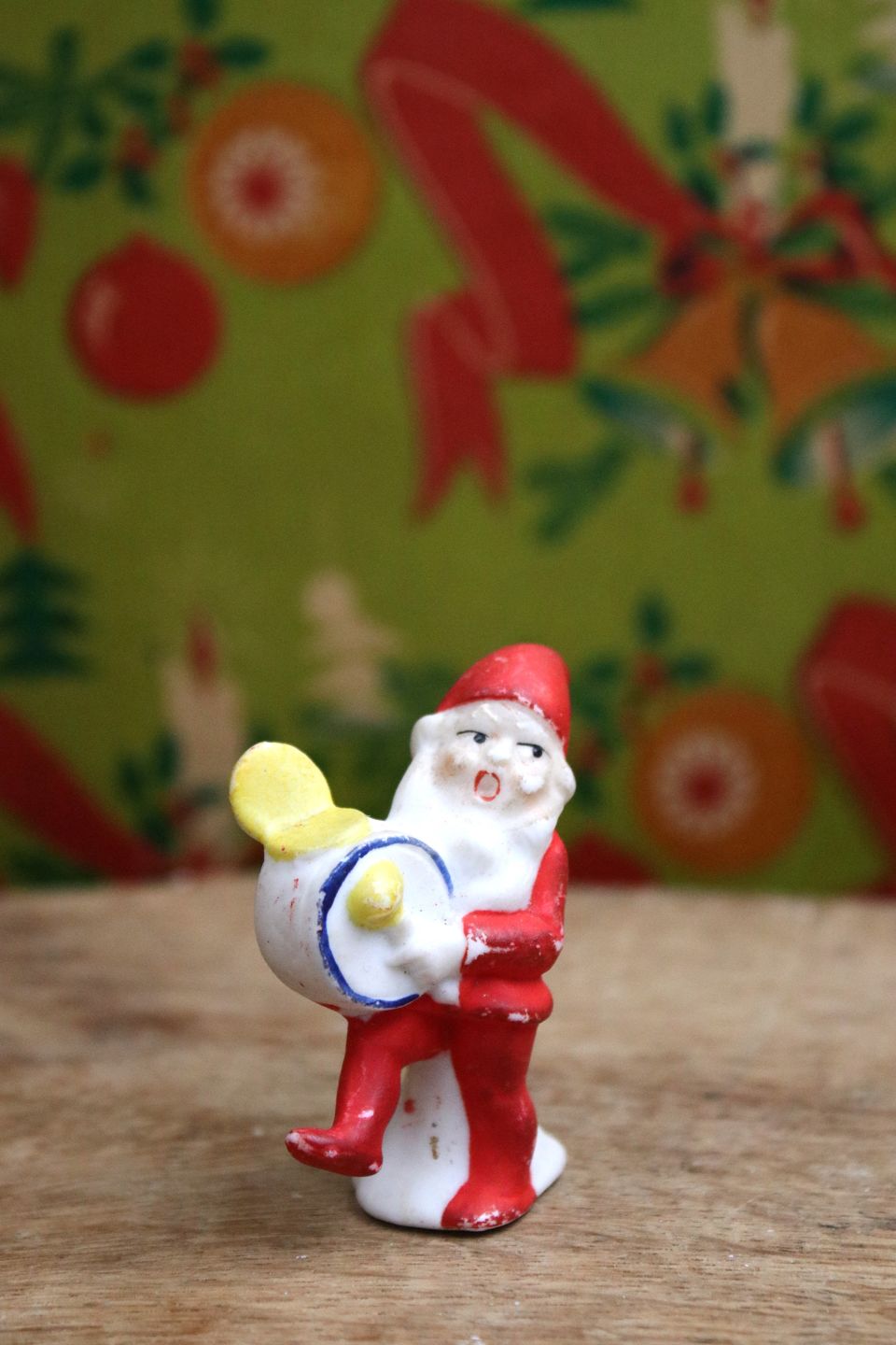 Little old biscuit gnomes with instruments. H: 5.5cm.1) with drum 2) with trumpet. 3) with whistle. Sold individually.